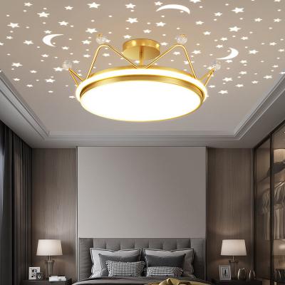 卧室水晶吸顶灯网红满天星皇冠投影灯儿童房卧室灯公主房间吸顶灯