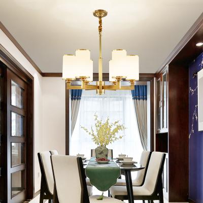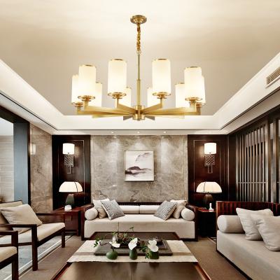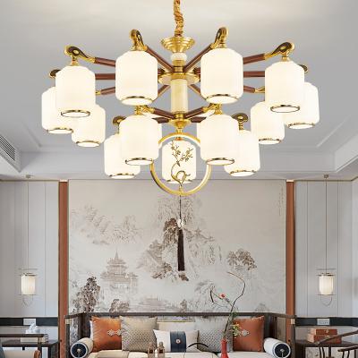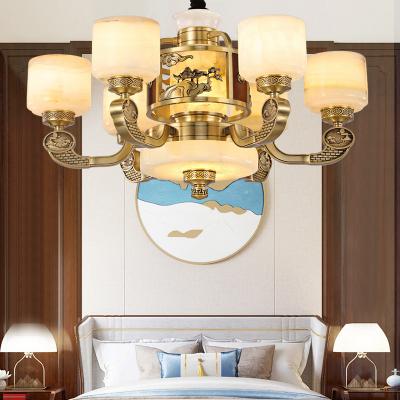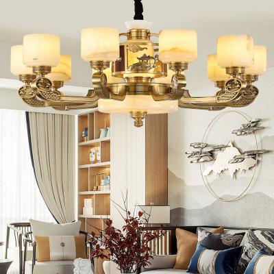 新中式全铜吊灯客厅灯高端大气别墅复式楼中国风餐厅天然玉石灯具
