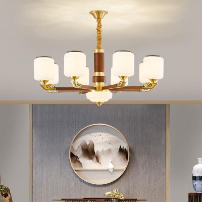 吊灯客厅灯新中式全铜玉石红木枝形吊灯书房卧室禅意家用大气灯饰