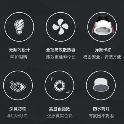 窄边框COB射灯嵌入式深防眩天花LED射灯家用背景墙酒店小山...