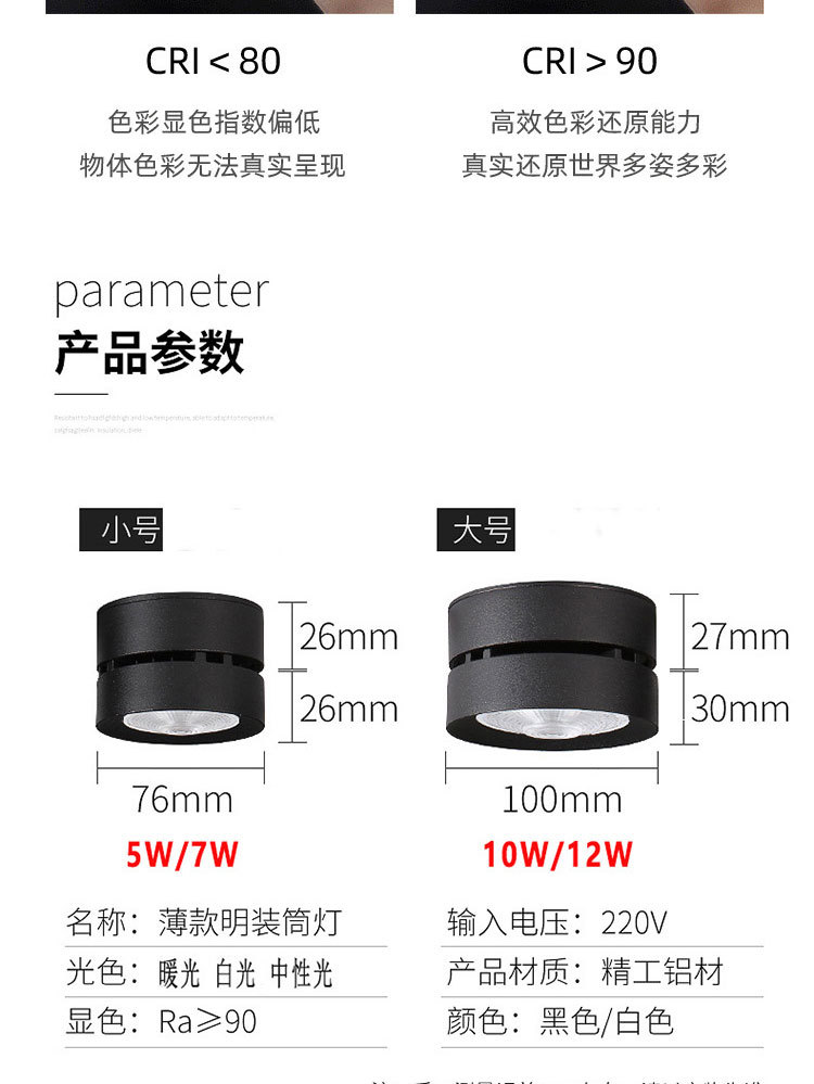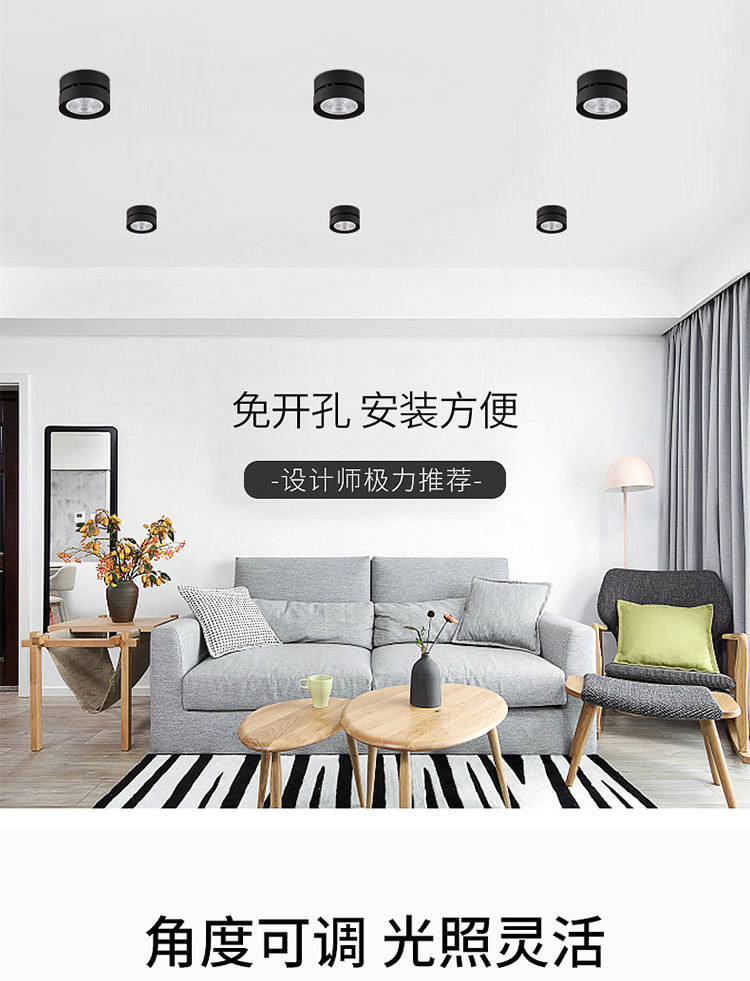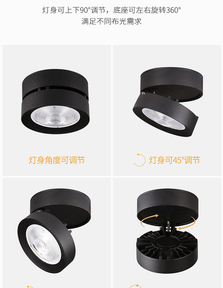 折叠式明装筒灯LED家用天花灯走廊过道吊顶吸顶式明装筒灯