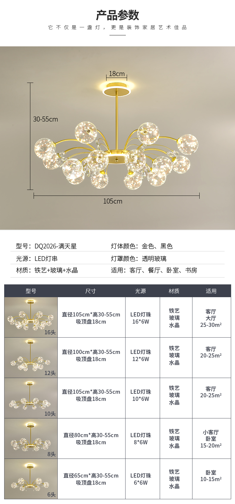 北欧客厅创意餐厅满天星吊灯魔豆灯现代简约卧室书房吊灯灯具