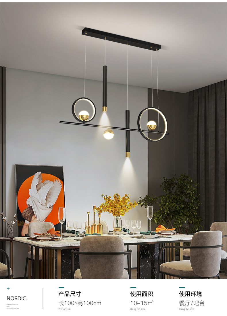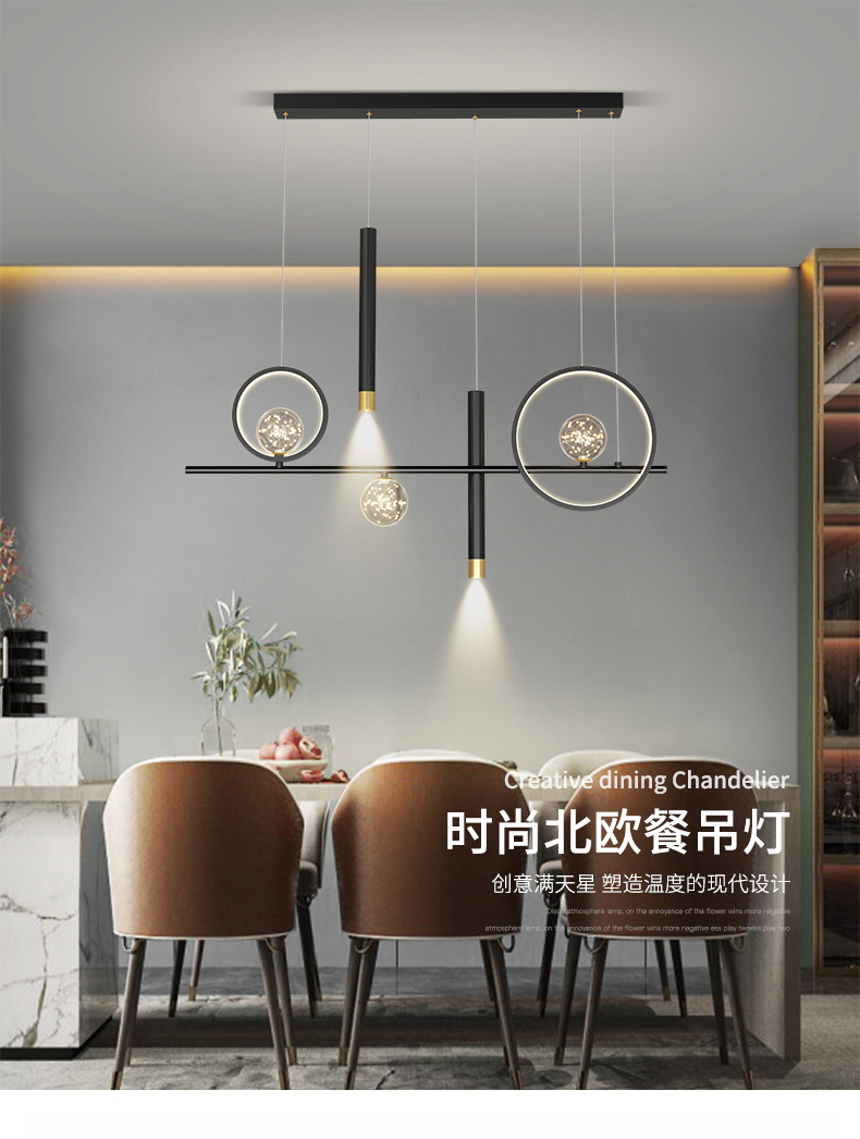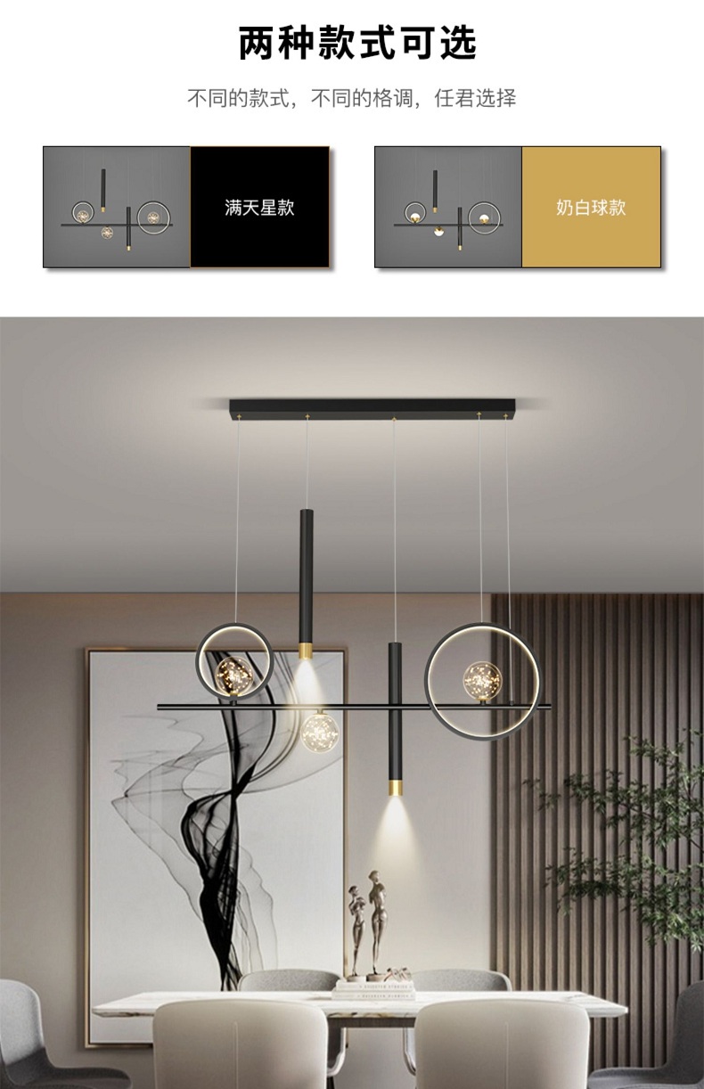 餐厅吊灯北欧创意满天星一字型新款长方形餐桌饭厅灯具