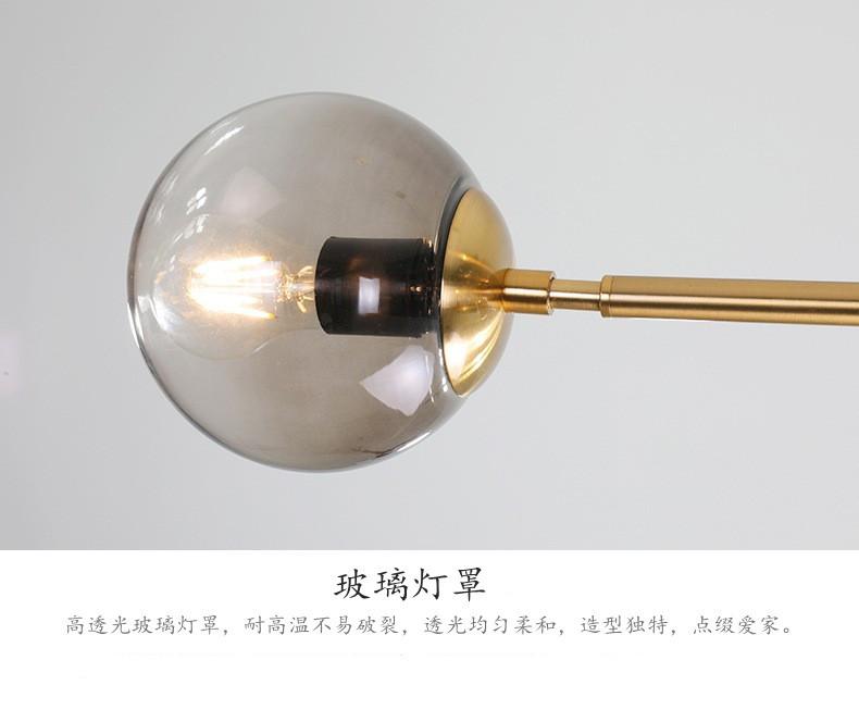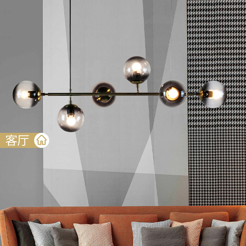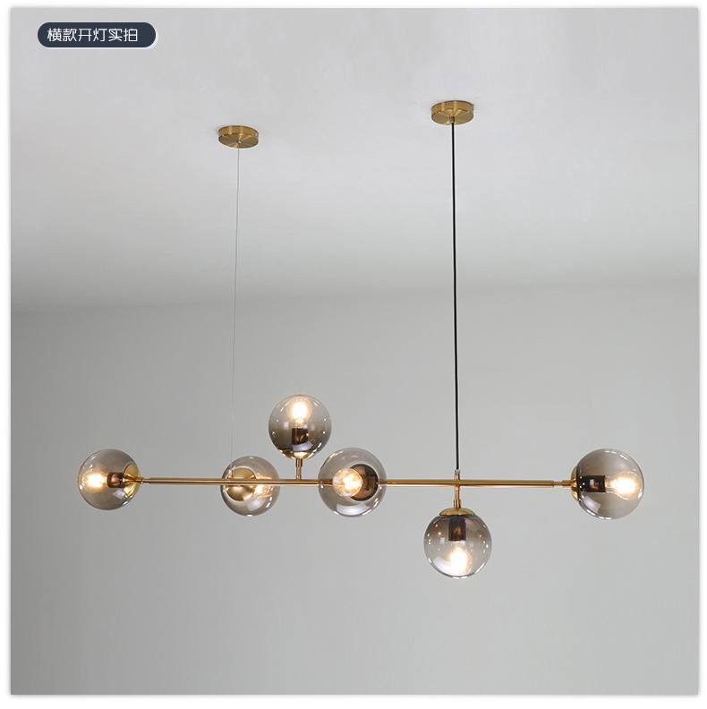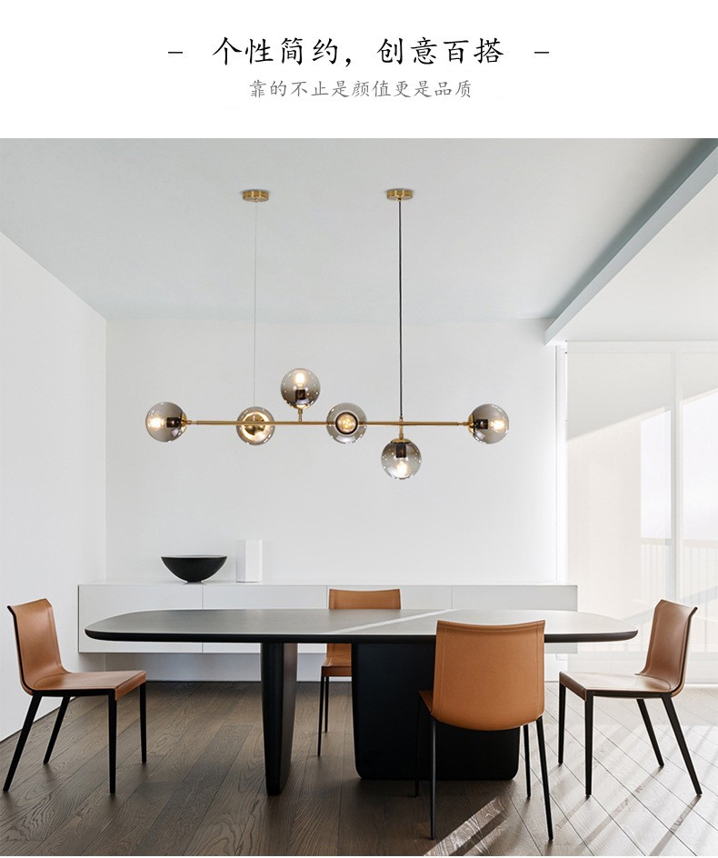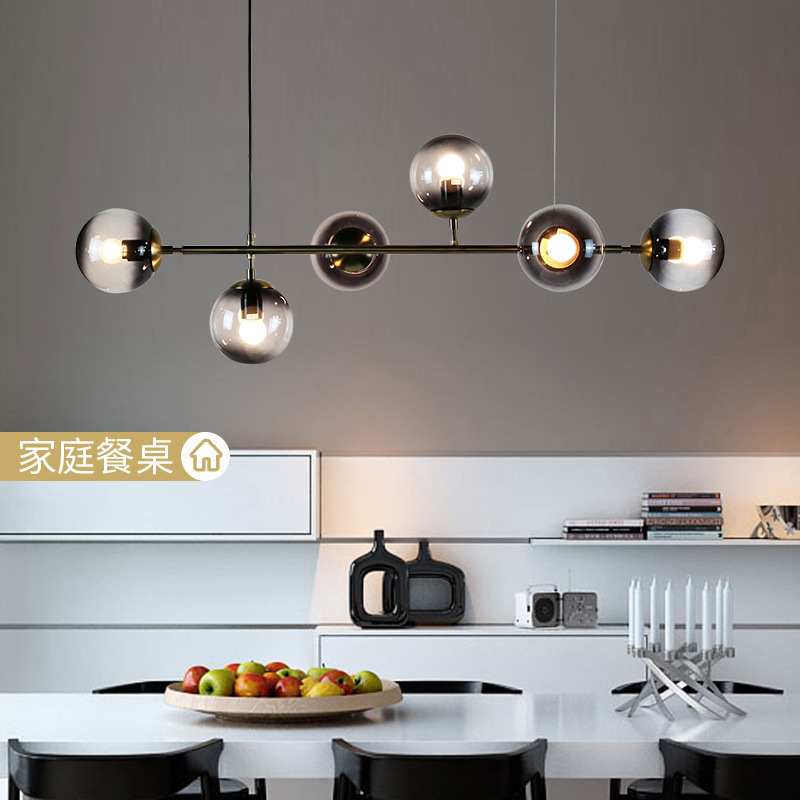 北欧设计师餐厅长形灯个性美式简约餐厅复古铁艺网红玻璃圆球吊灯