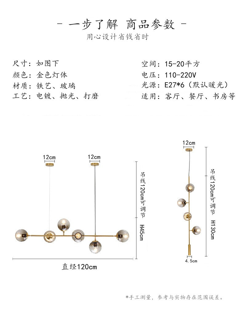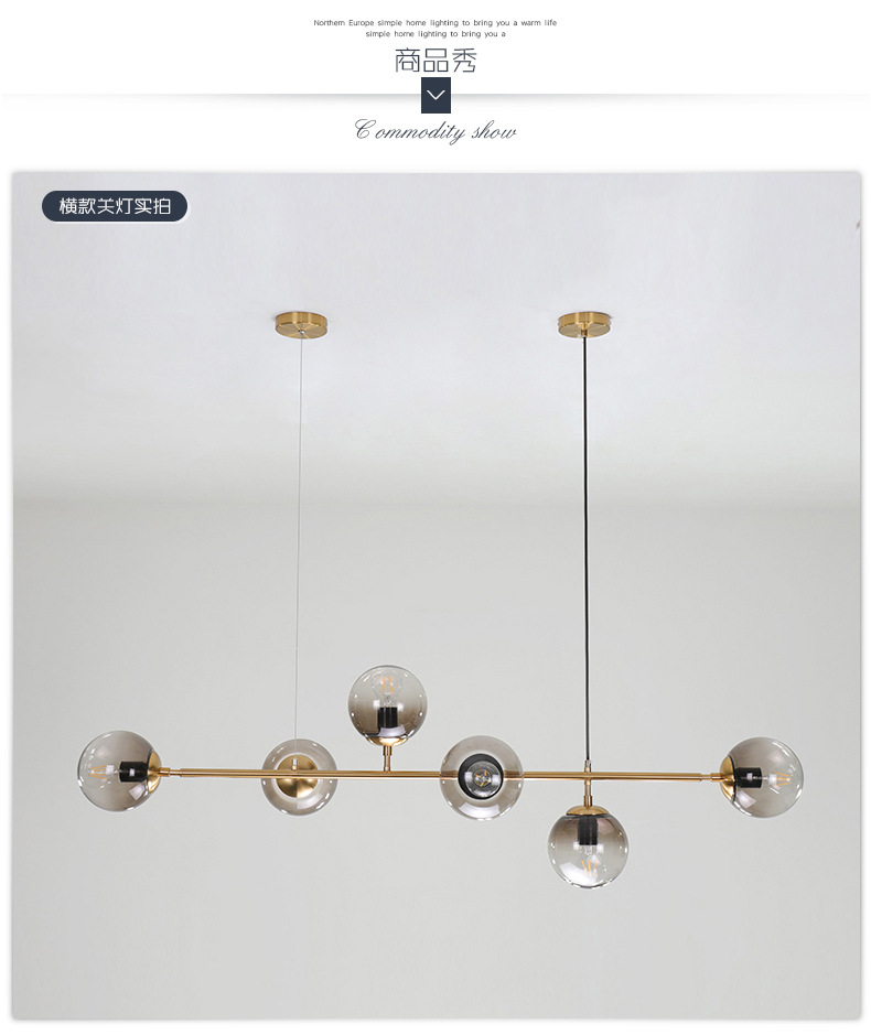 迈娅商城 北欧餐厅长形灯餐厅复古铁艺玻璃圆球吊灯