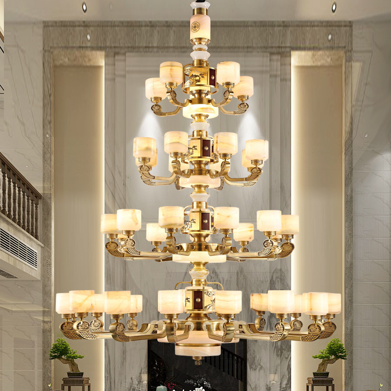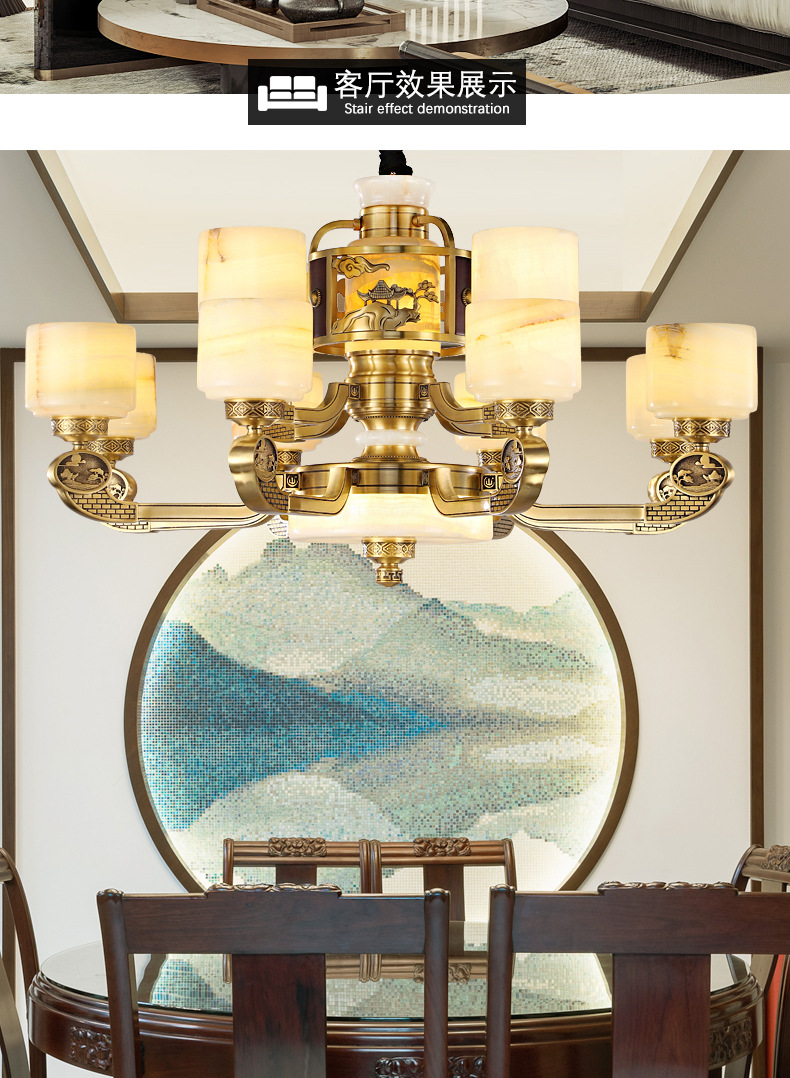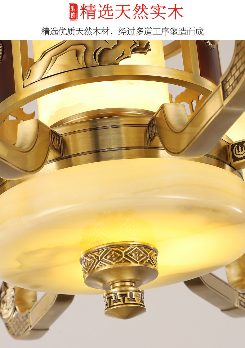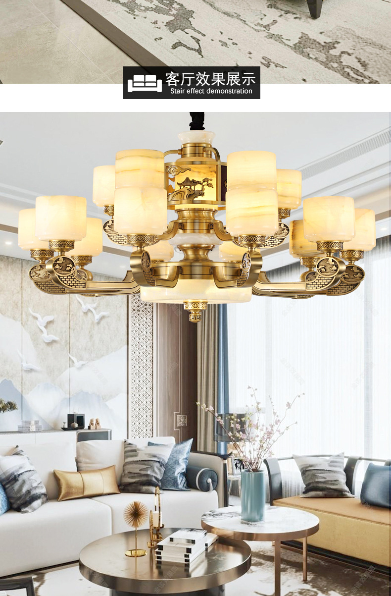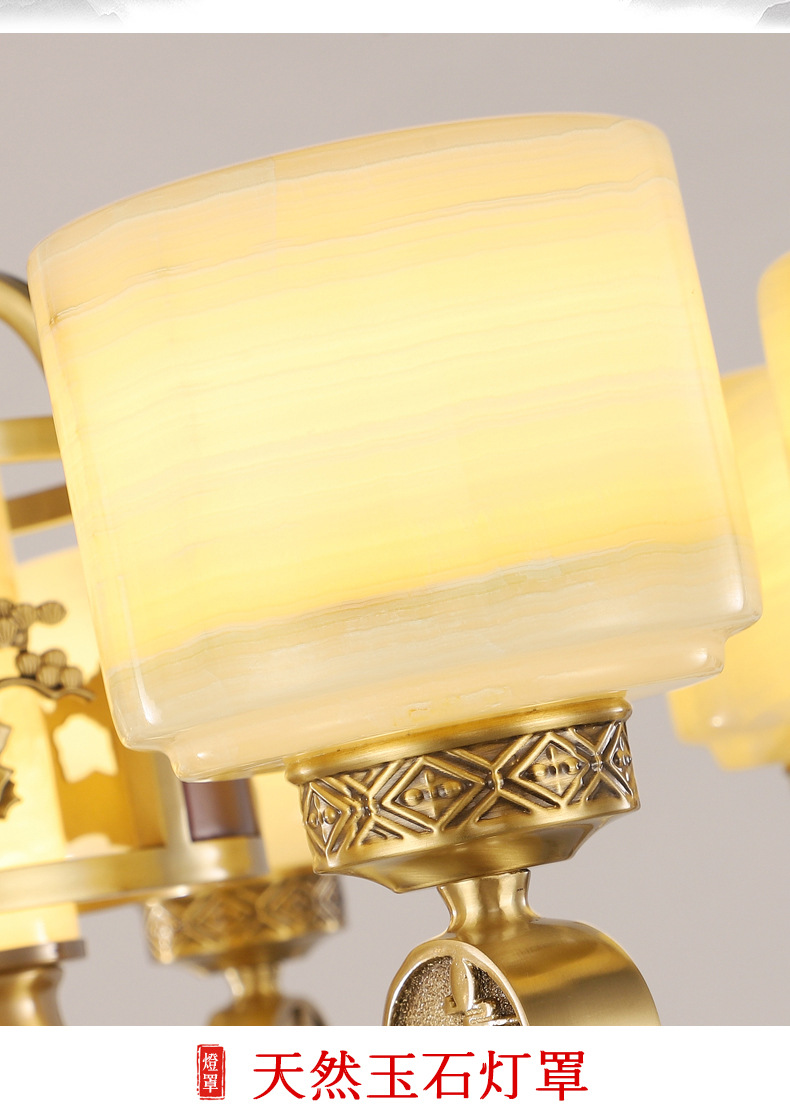 新中式全铜吊灯客厅灯高端大气别墅复式楼中国风餐厅天然玉石灯具