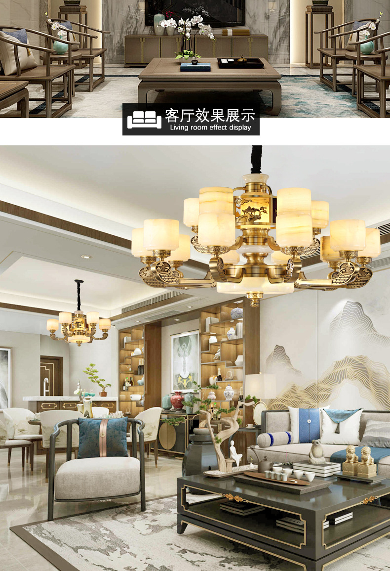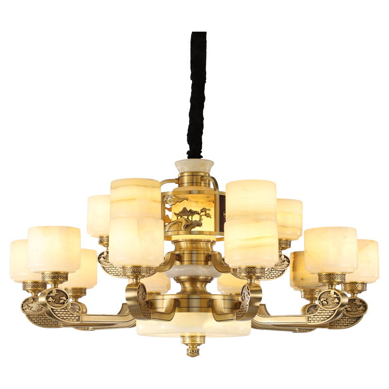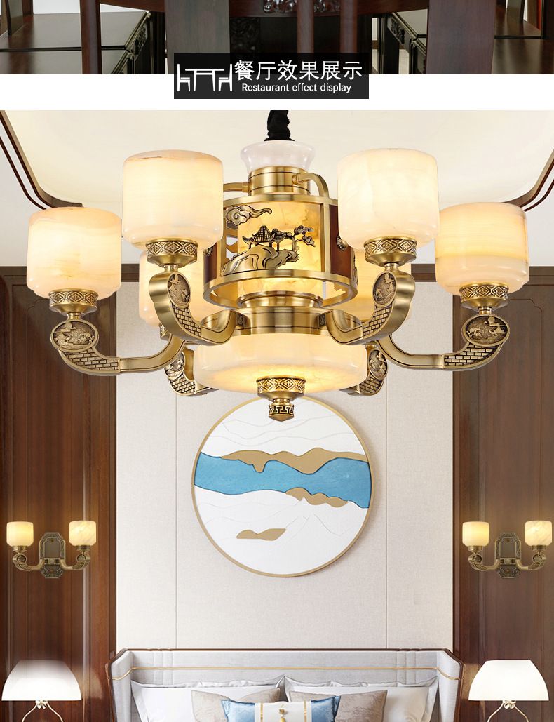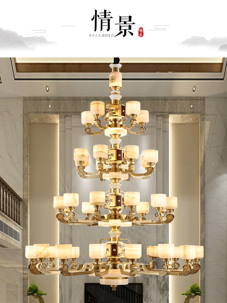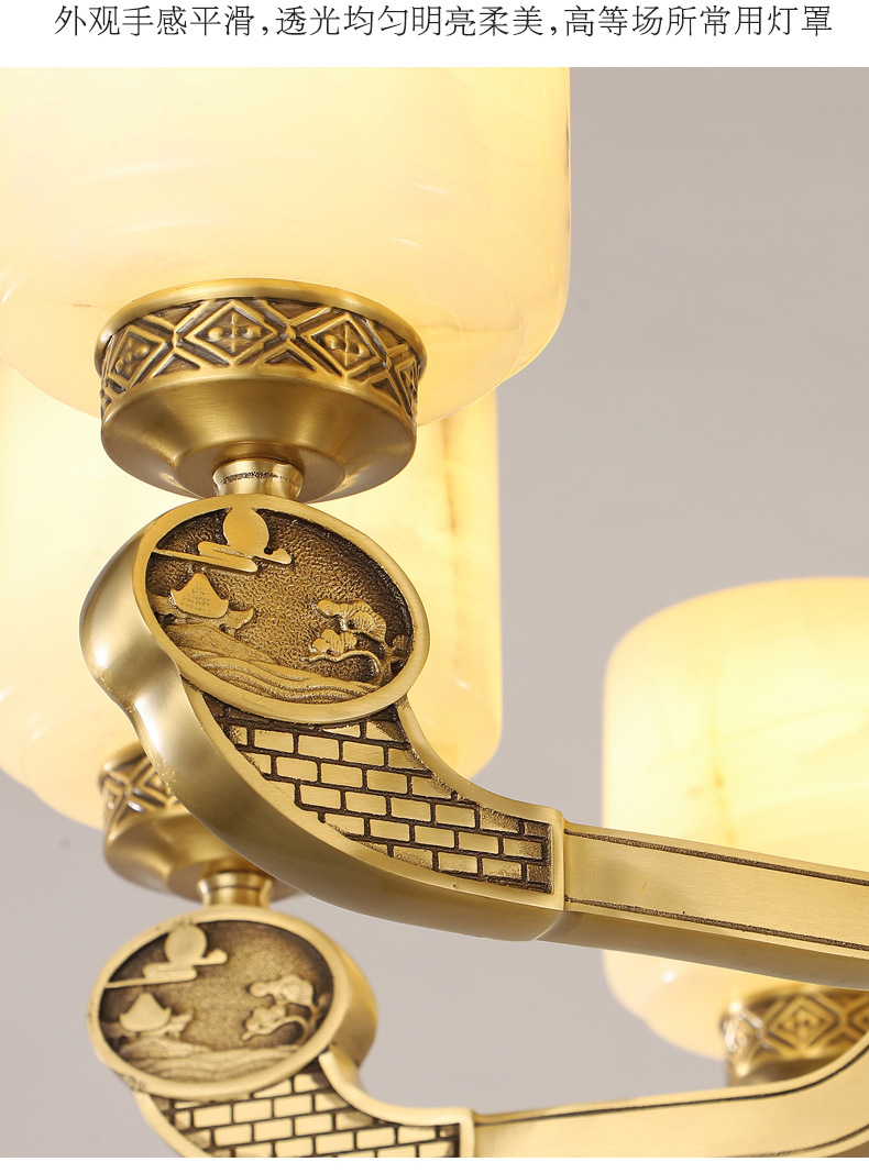新中式全铜吊灯客厅灯高端大气别墅复式楼中国风餐厅天然玉石灯具