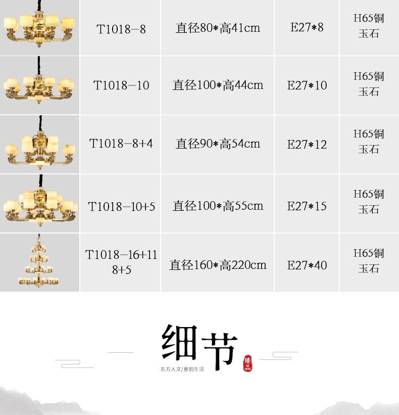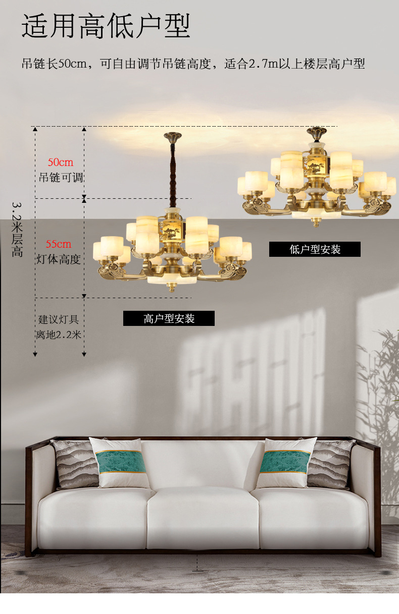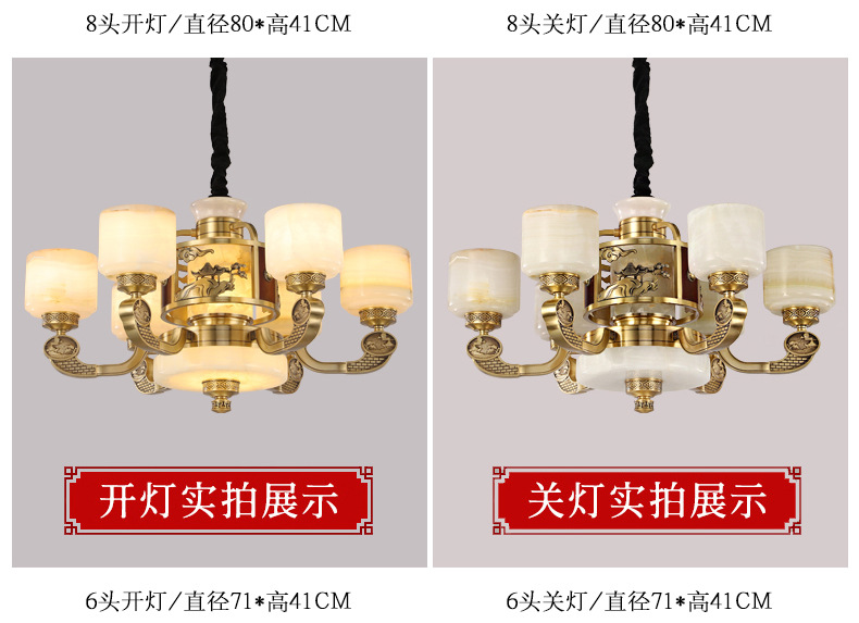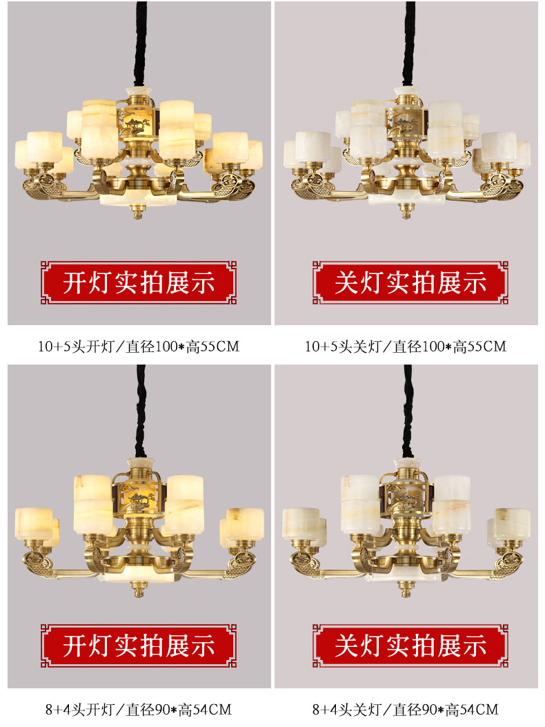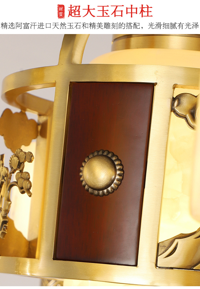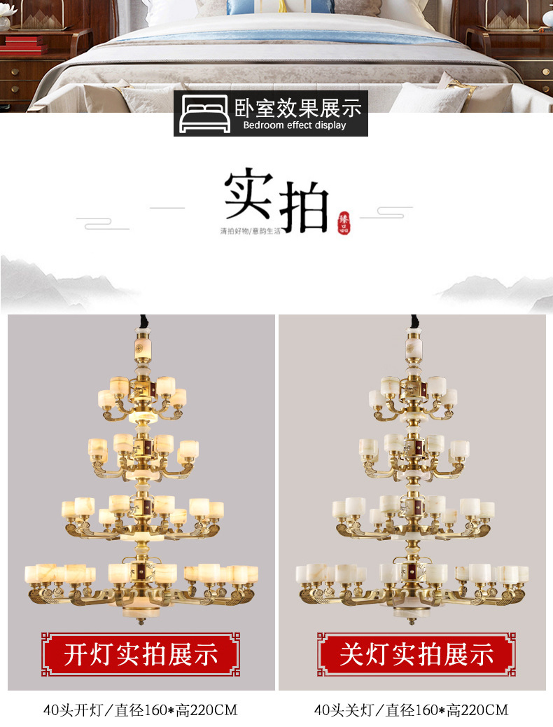 新中式全铜吊灯客厅灯高端大气别墅复式楼中国风餐厅天然玉石灯具