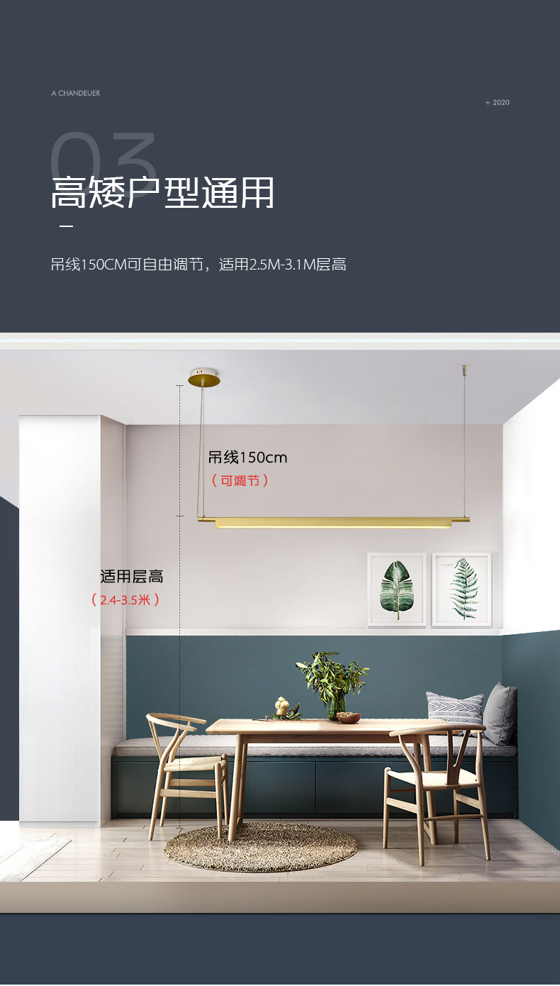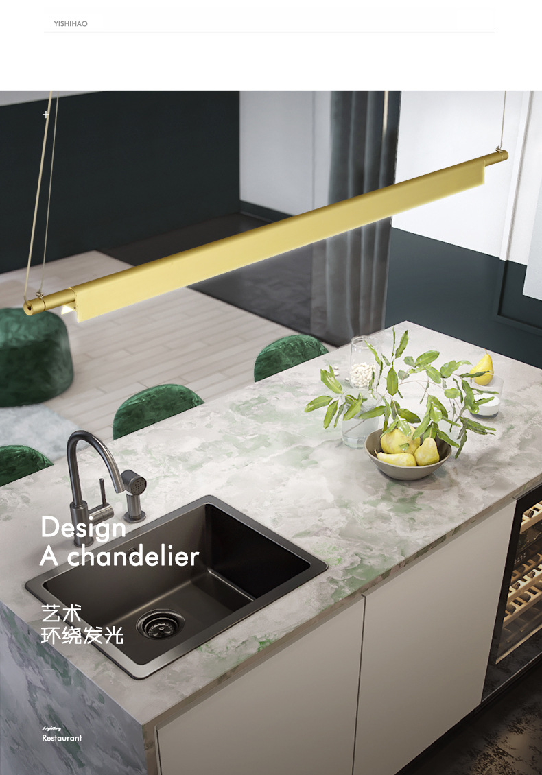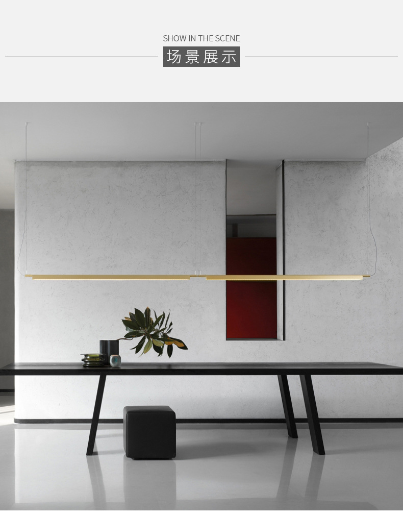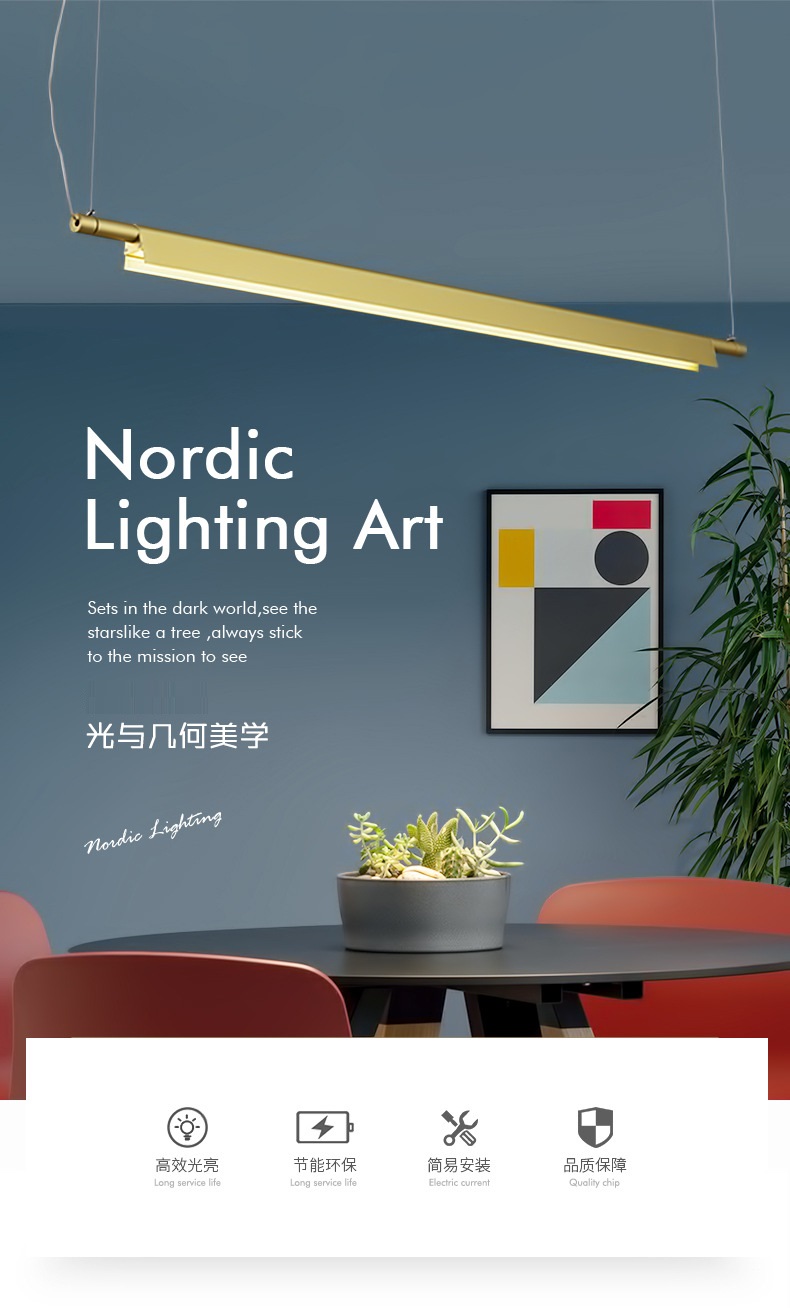 LED饭厅线条灯办公室会所设计师灯北欧现代简约餐厅吊灯长条