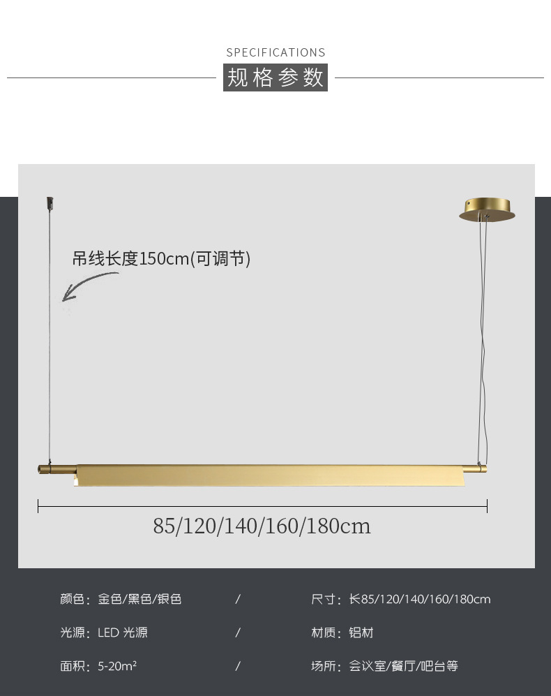 迈娅商城 LED饭厅线条灯简约餐厅长条吊灯