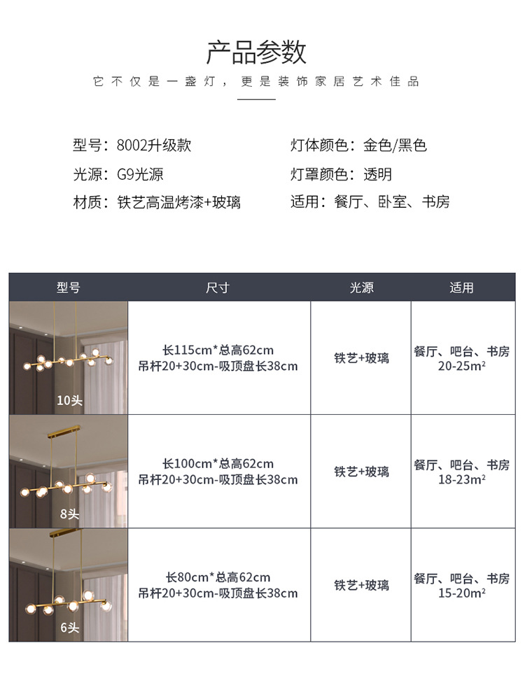 迈娅商城 餐厅吊灯长方形长条饭厅魔豆灯具