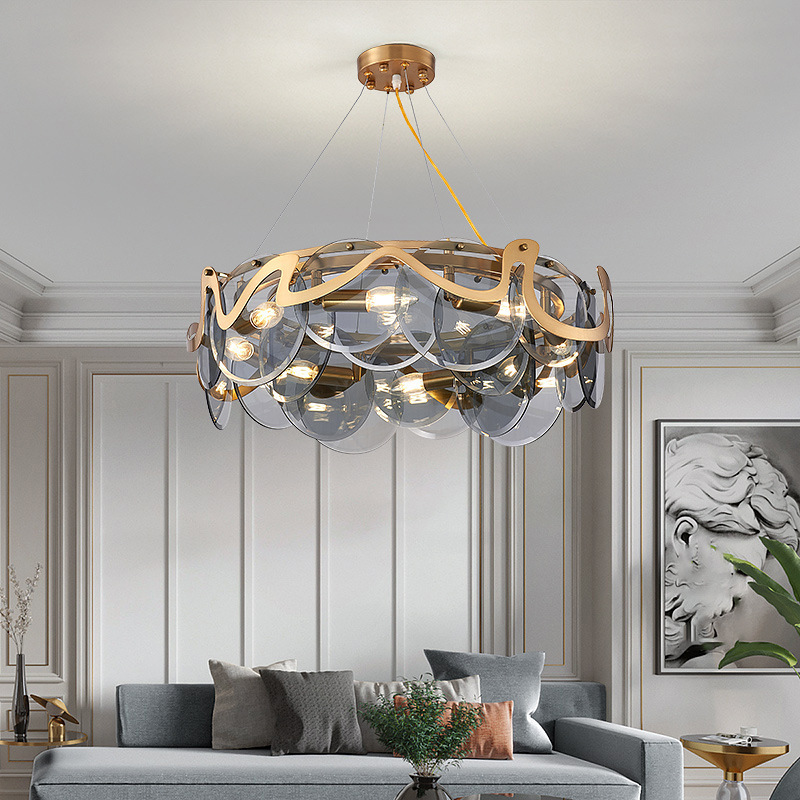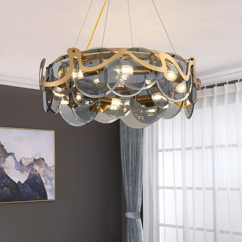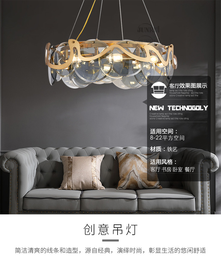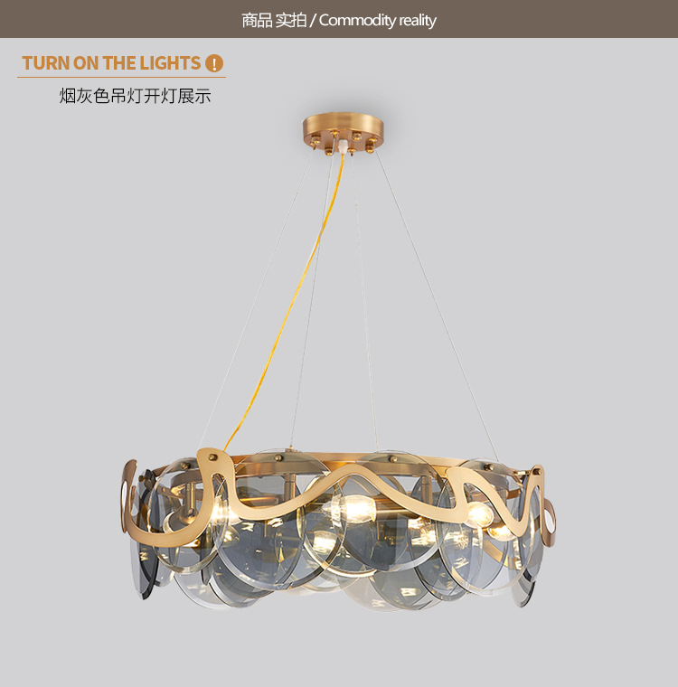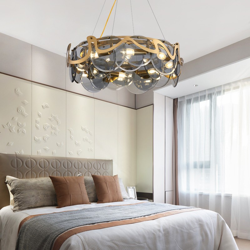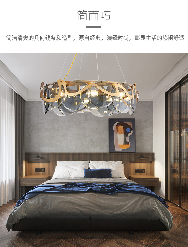 后现代客厅艺术吊灯简约烟灰玻璃餐厅卧室样板间网红水晶吊灯