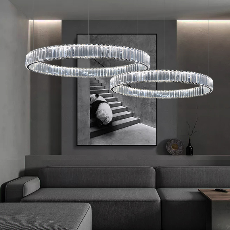 客厅吊灯现代餐厅网红水晶灯意式简约创意圆圈卧室餐厅灯饰