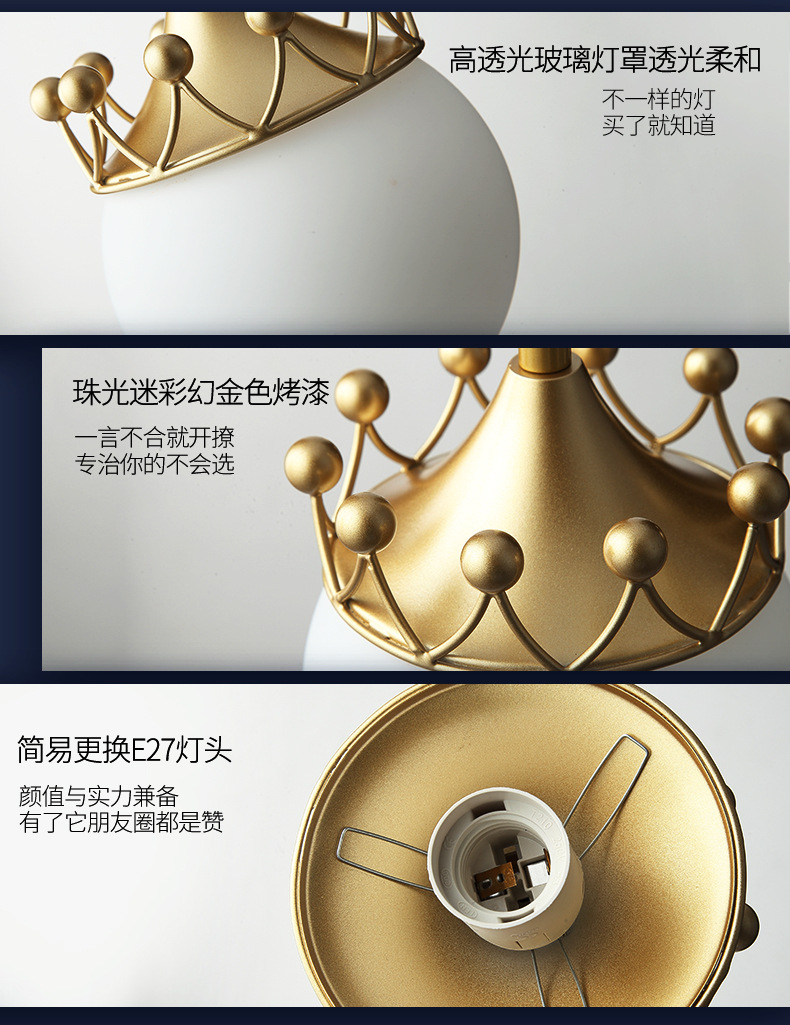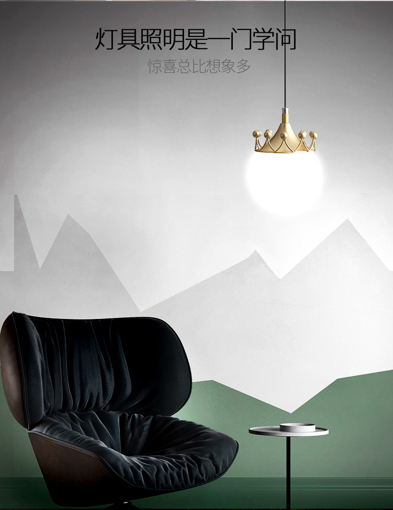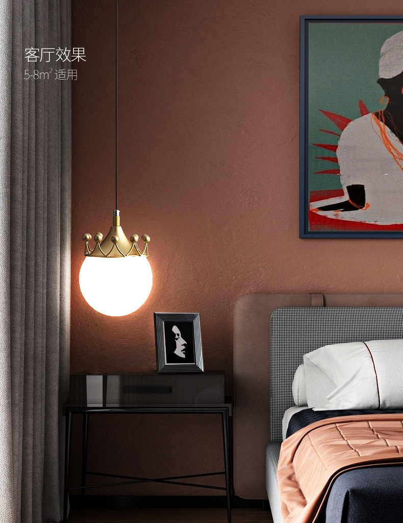 现代简约极简网红创意个性单头吧台餐厅主卧室床头皇冠长线小吊灯