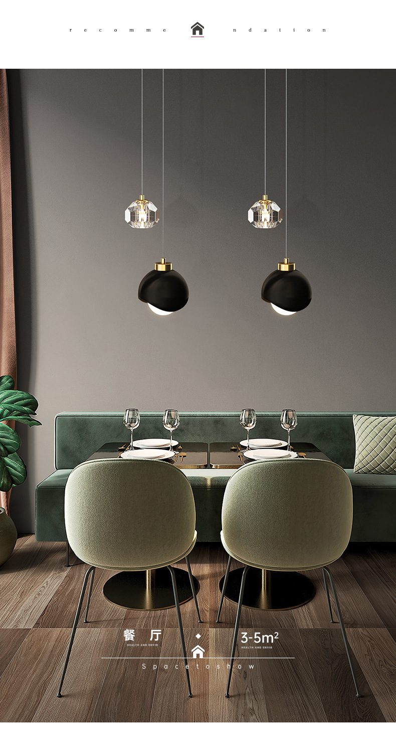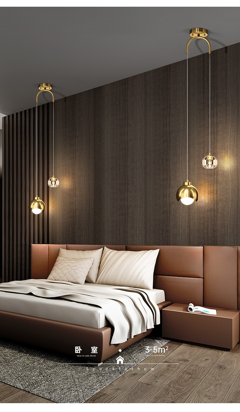 北欧现代餐厅灯金色长线圆形水晶吊灯酒店餐桌卧室床头小吊灯