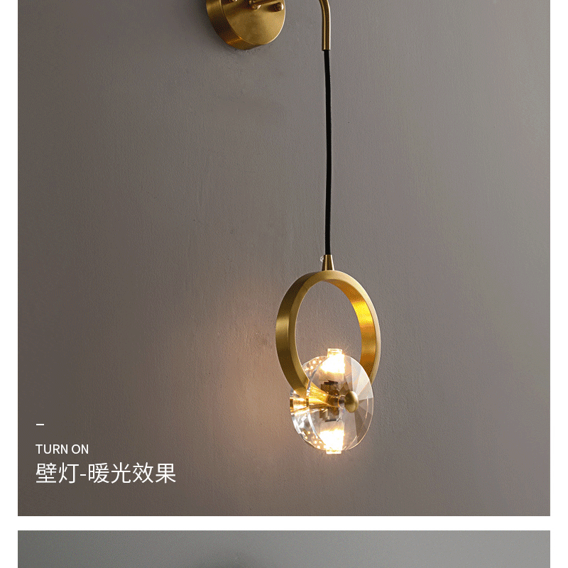 单头全铜吊灯背景墙壁灯简约过道走廊创意卧室床头全铜水晶壁灯