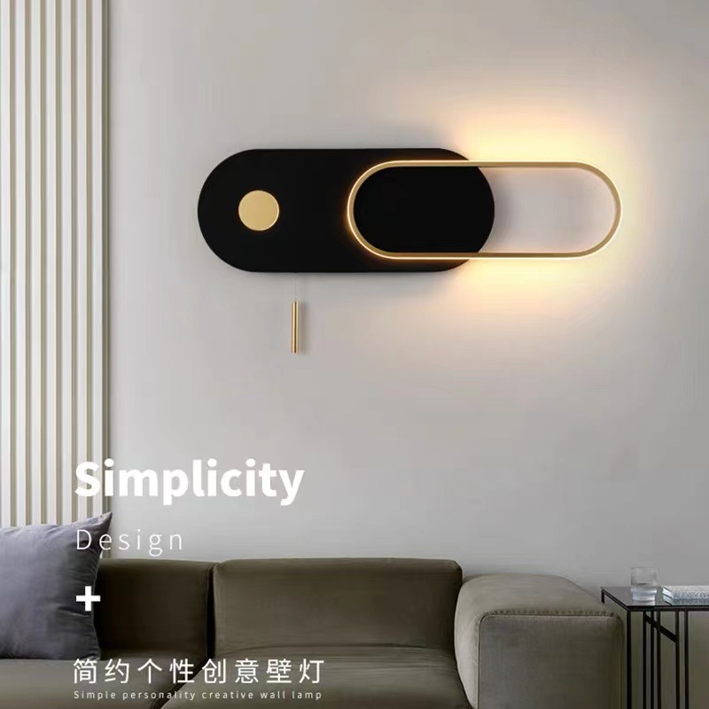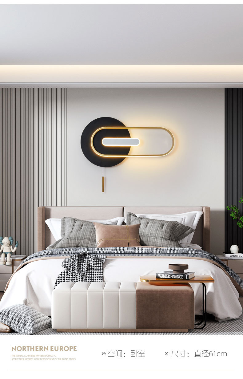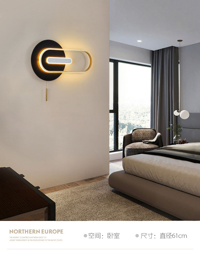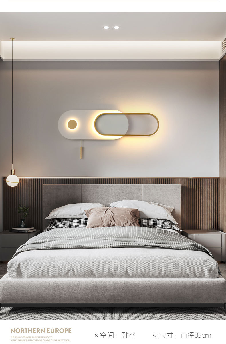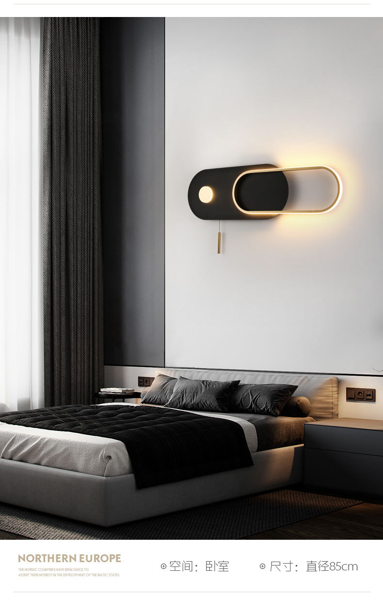 卧室床头灯北欧简约带拉线开关书房灯艺术创意个性客厅背景墙壁灯
