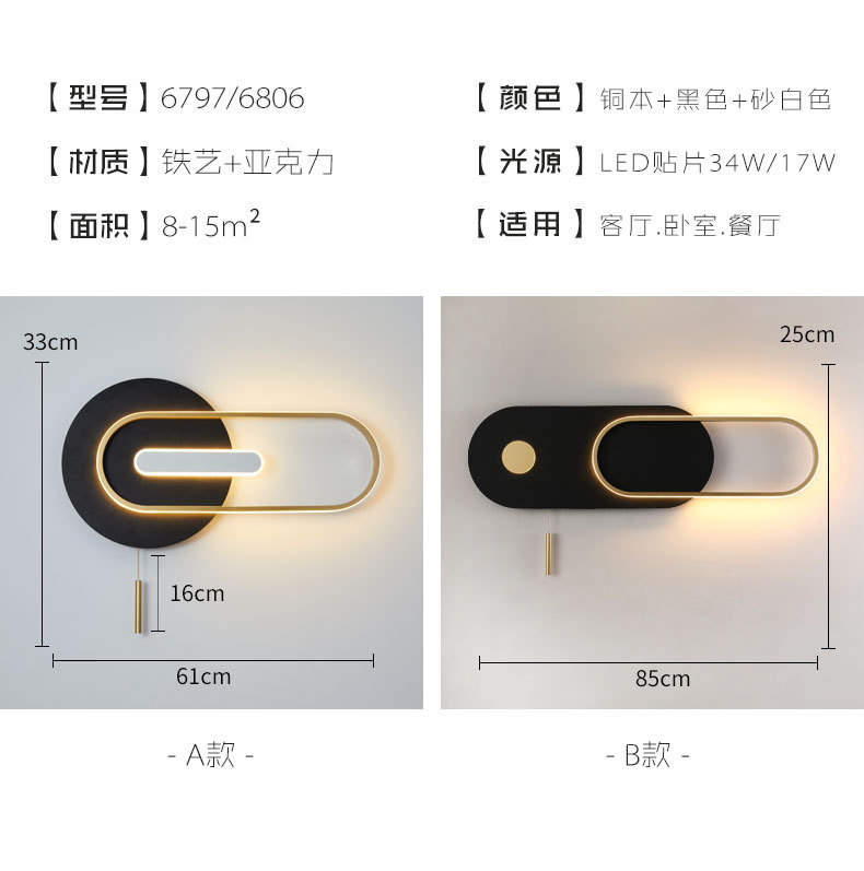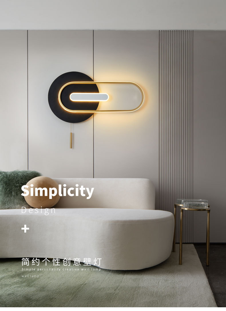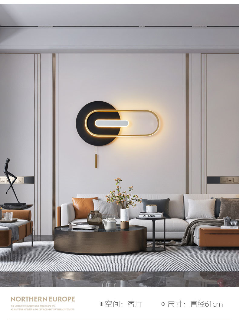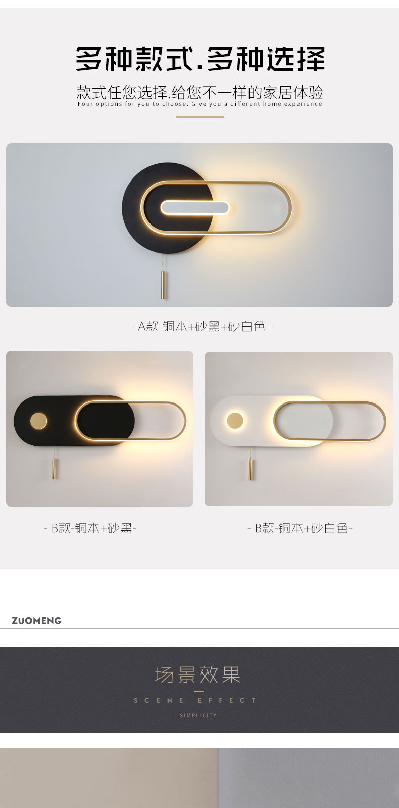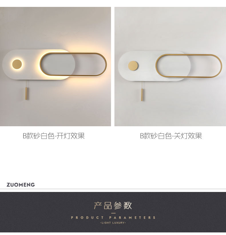 卧室床头灯北欧简约带拉线开关书房灯艺术创意个性客厅背景墙壁灯