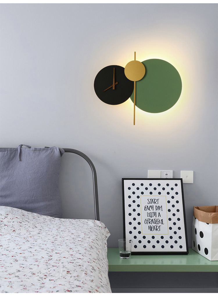 北欧卧室床头时钟表壁灯简约现代简约客厅背景墙走廊过道挂钟灯具