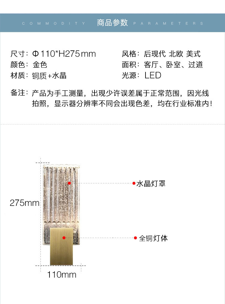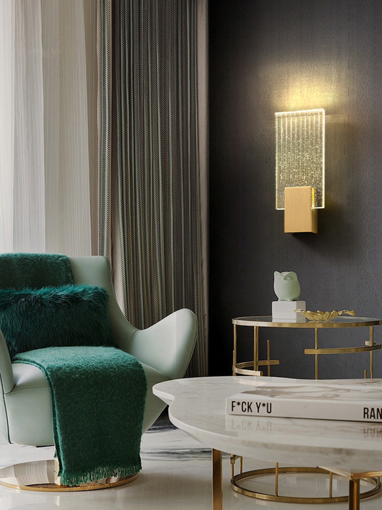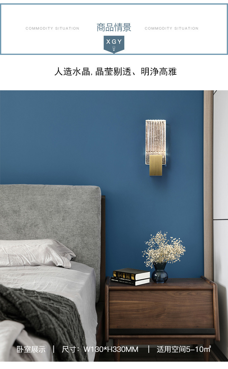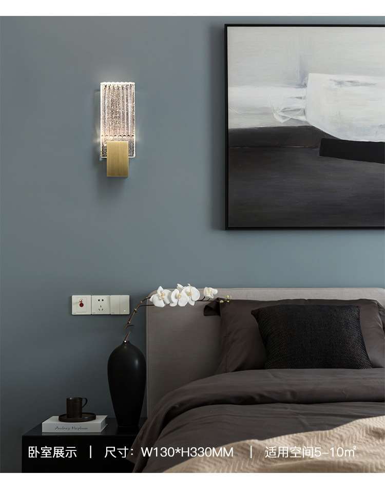 后现代创意现代简约水晶壁灯北欧卧室床头灯客厅简美壁灯全铜