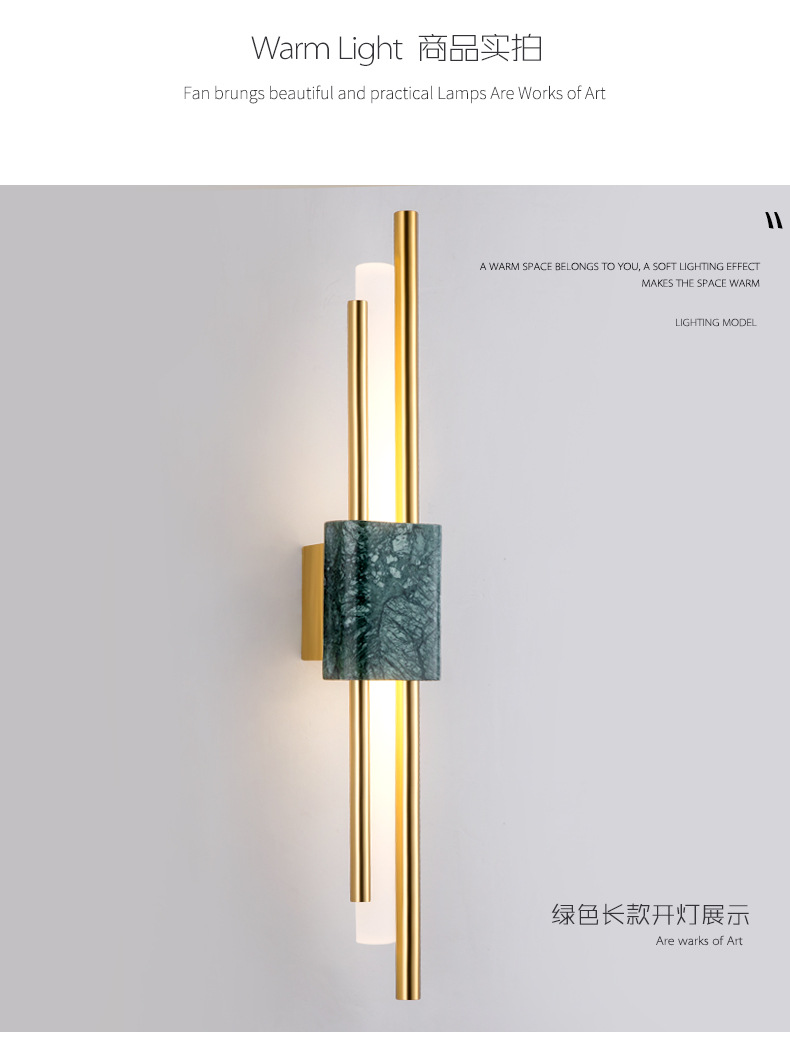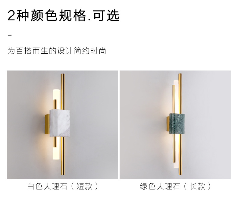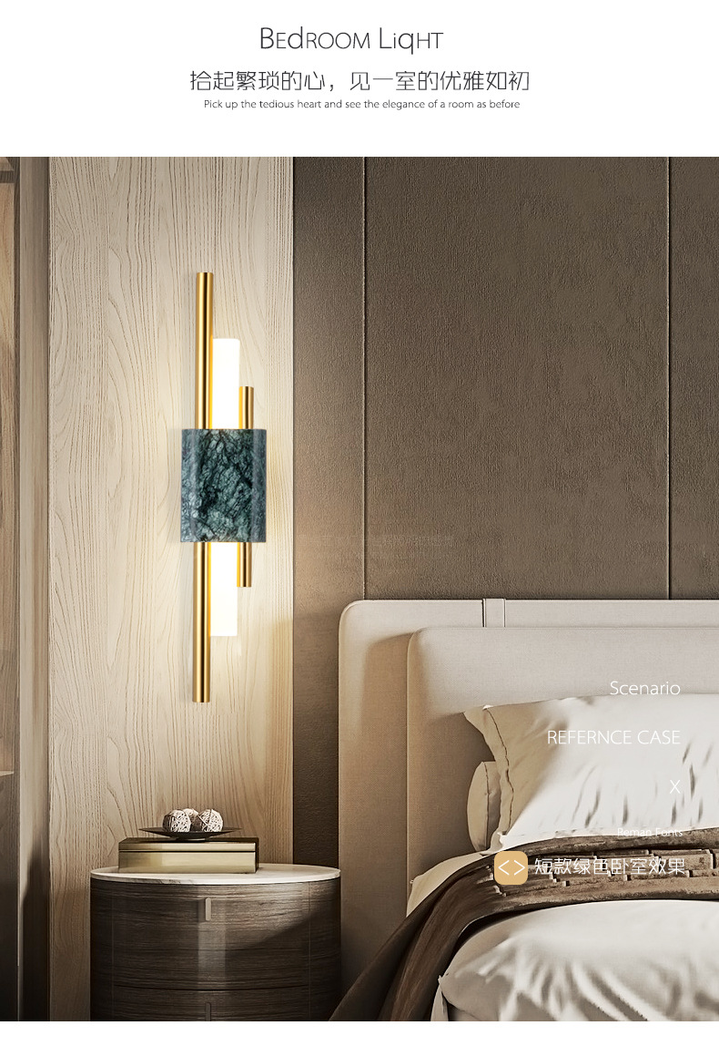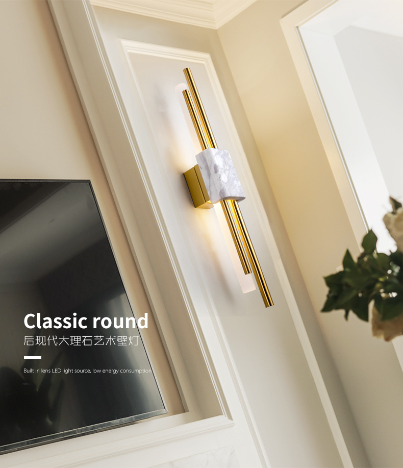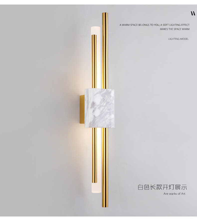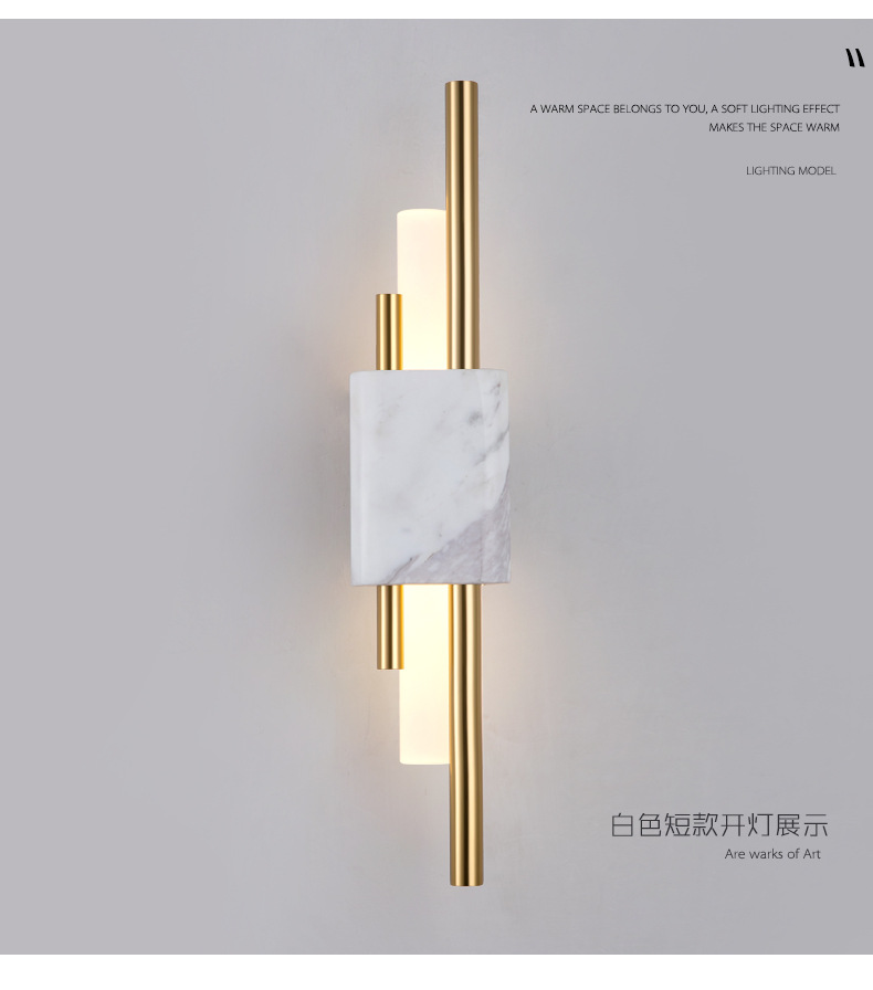 后现代大理石壁灯客厅电视背景墙简约新中式风格卧室床头全铜