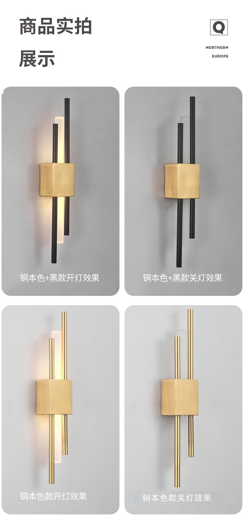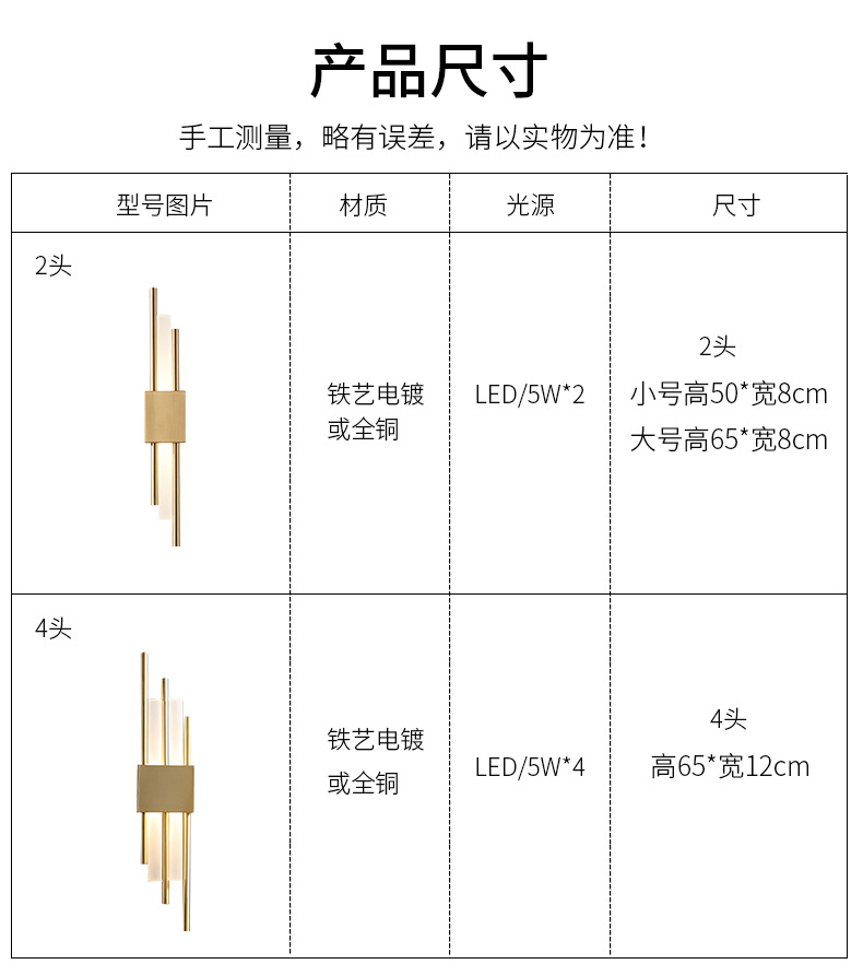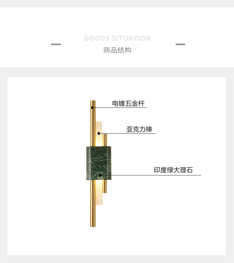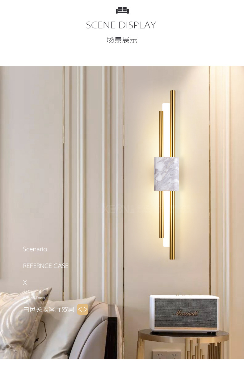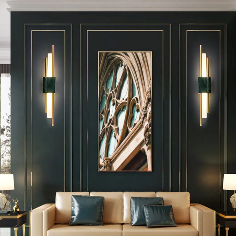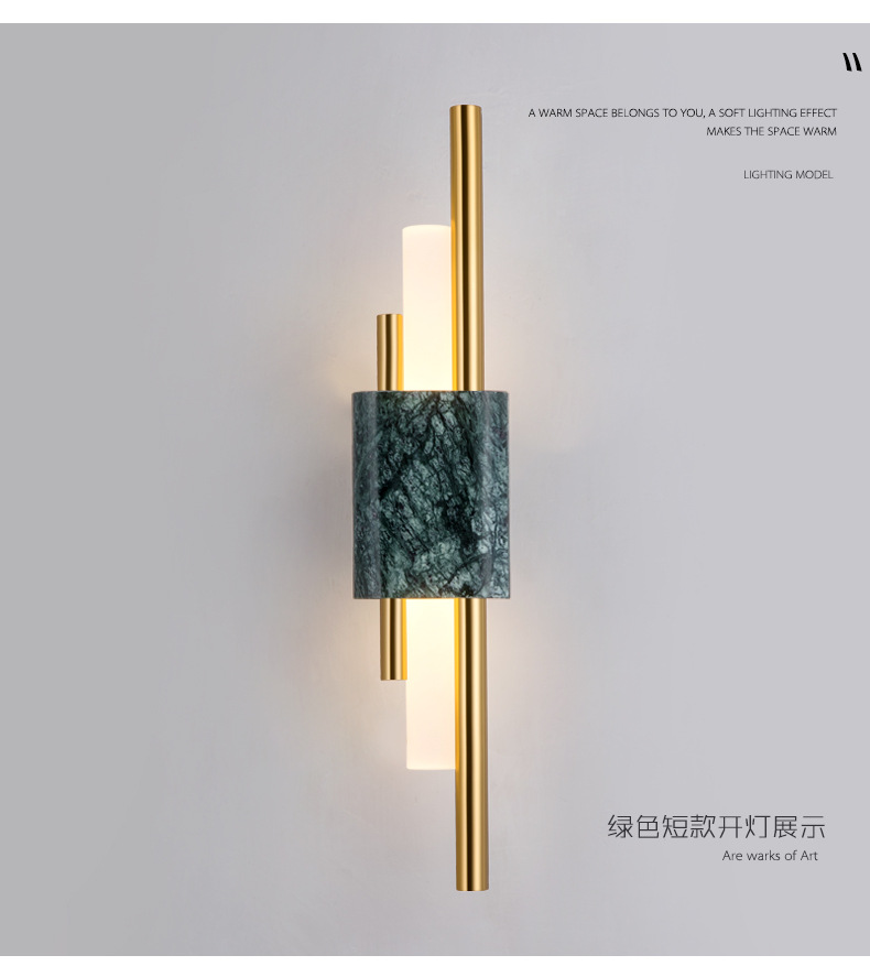 后现代大理石壁灯客厅电视背景墙简约新中式风格卧室床头全铜