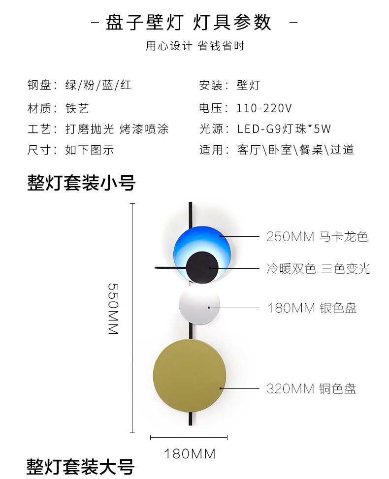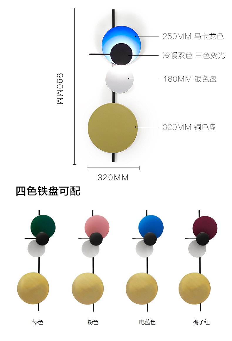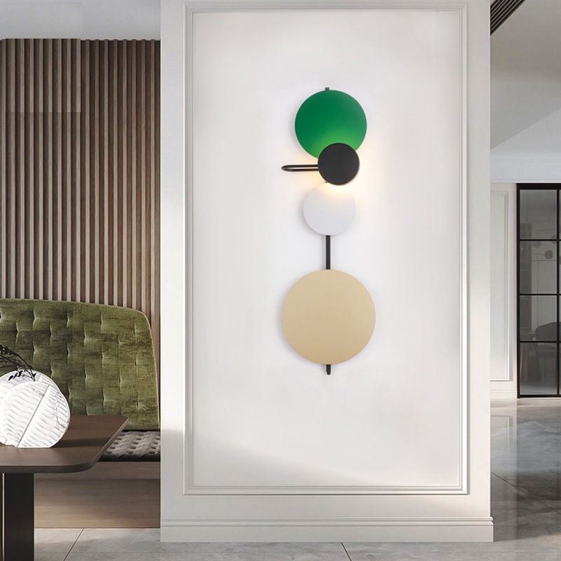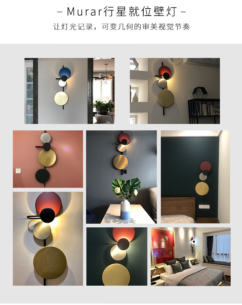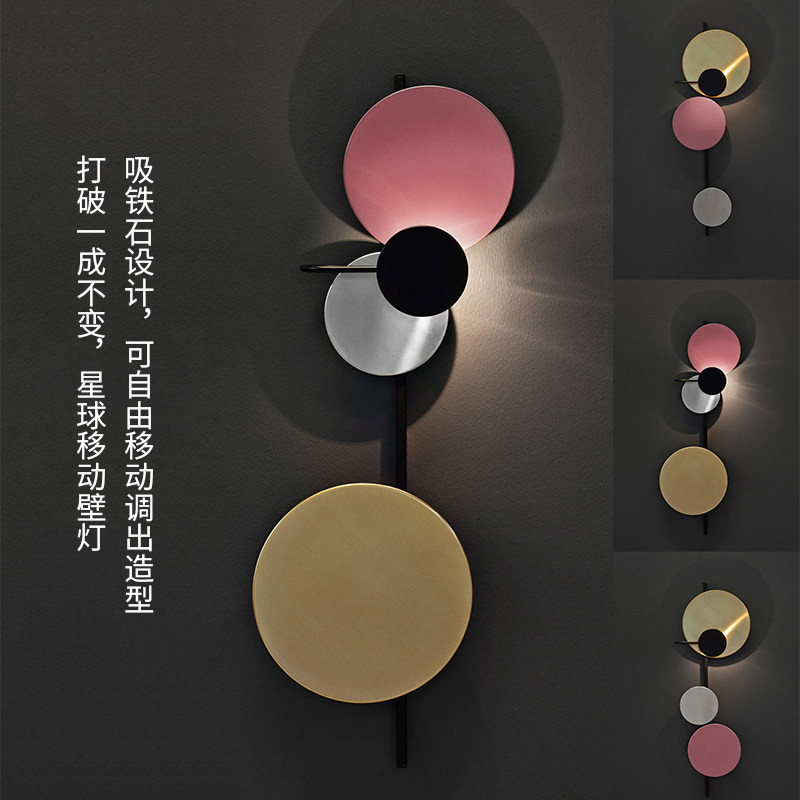 北欧客厅壁灯装饰楼梯现代简约过道墙灯创意卧室圆星球马卡龙壁灯