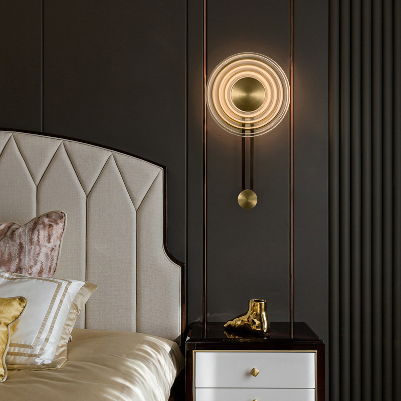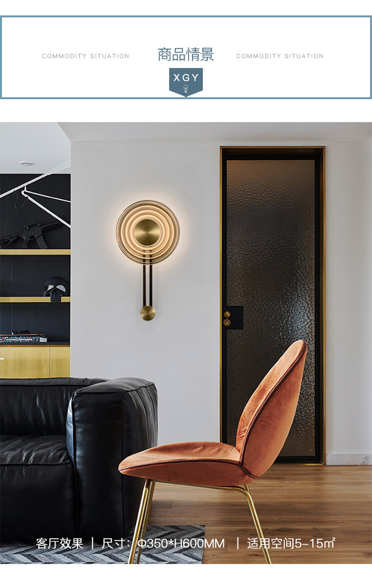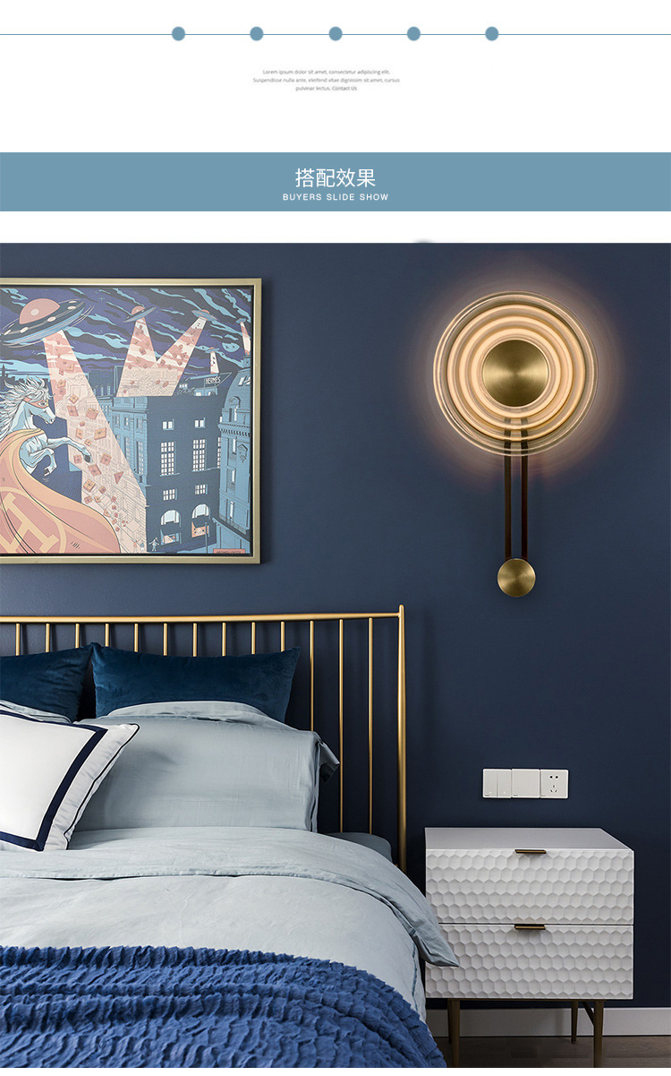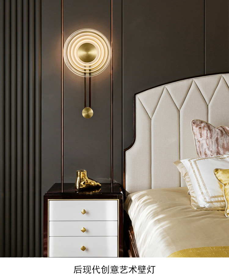 全铜创意圆形壁灯酒店氛围现代简约室内客厅灯led灯具