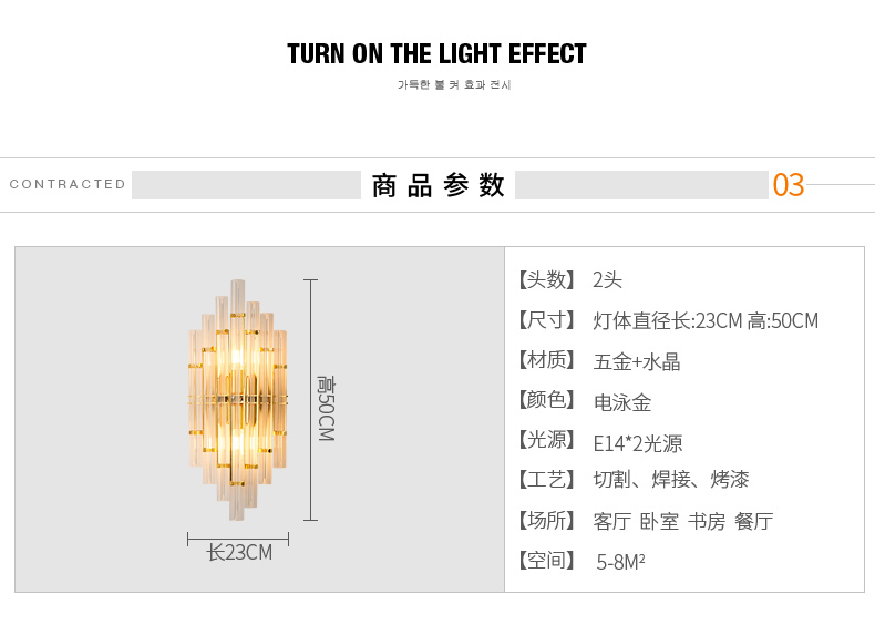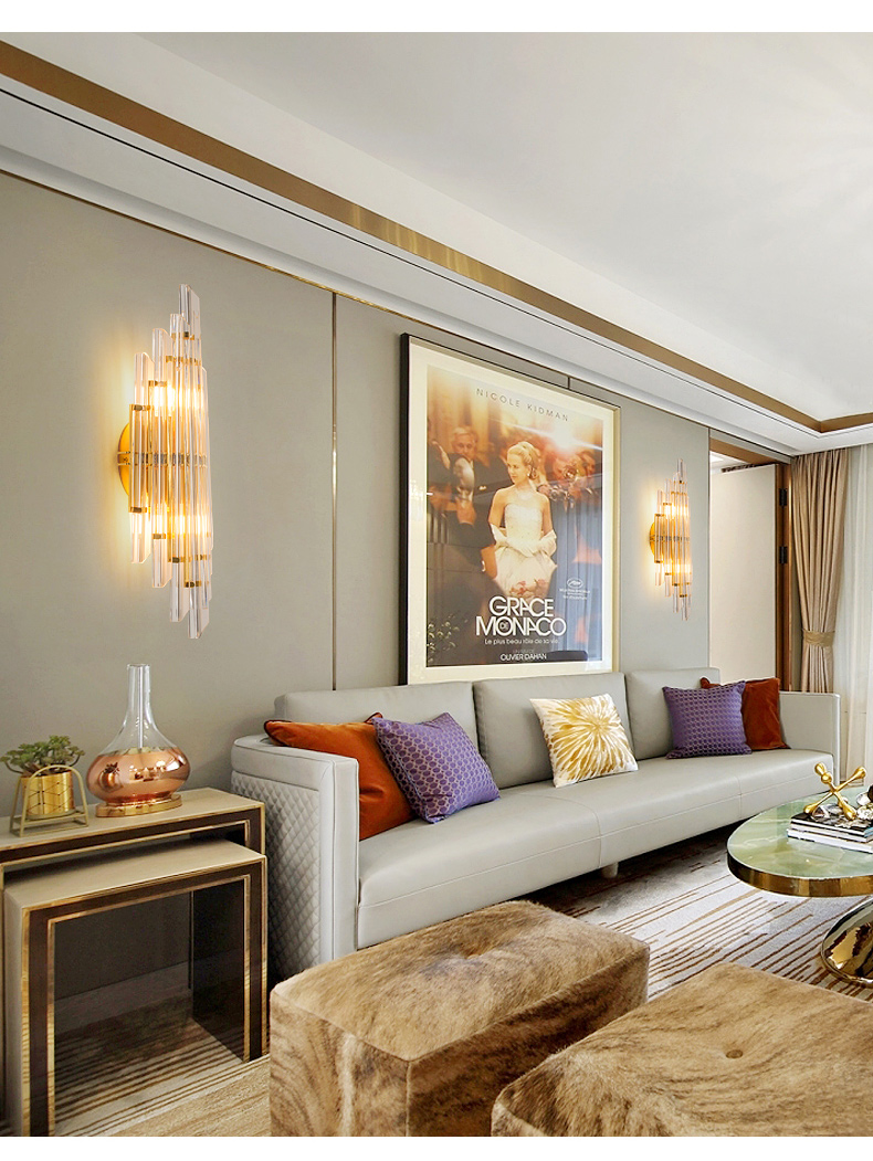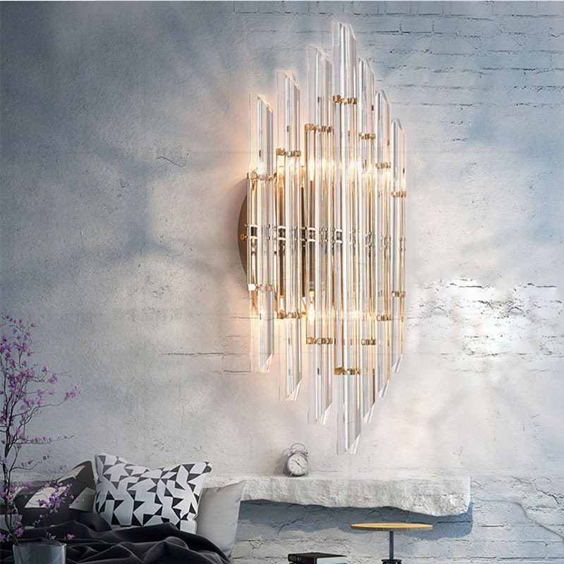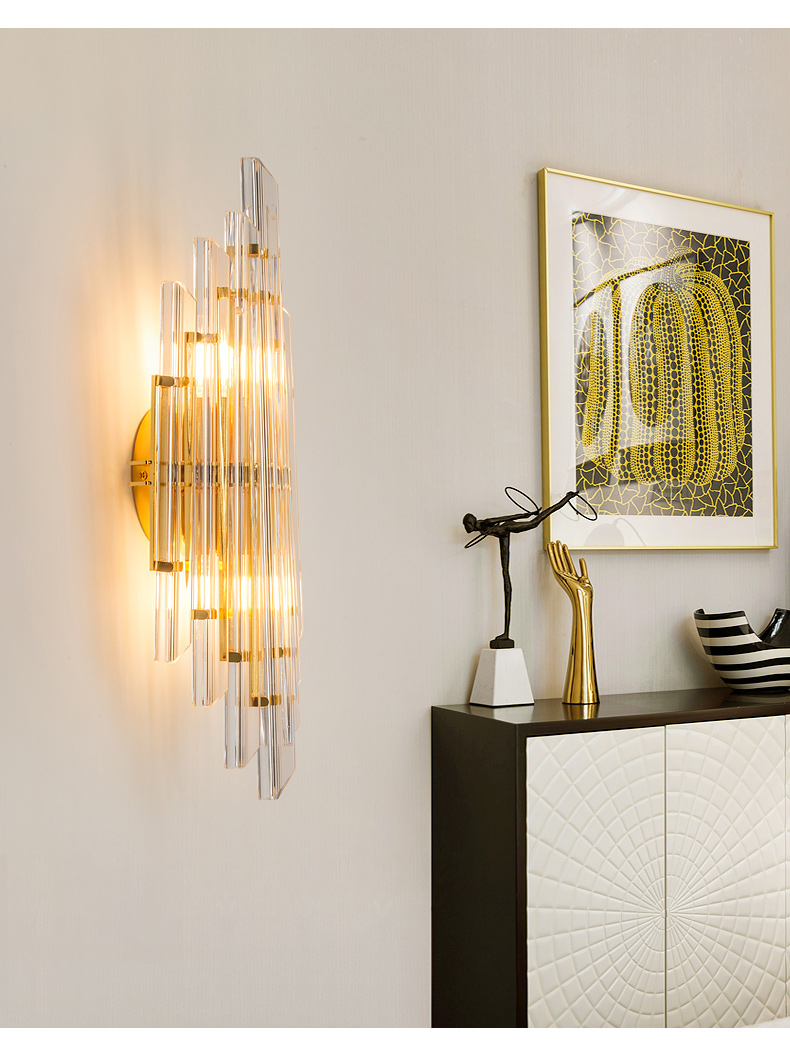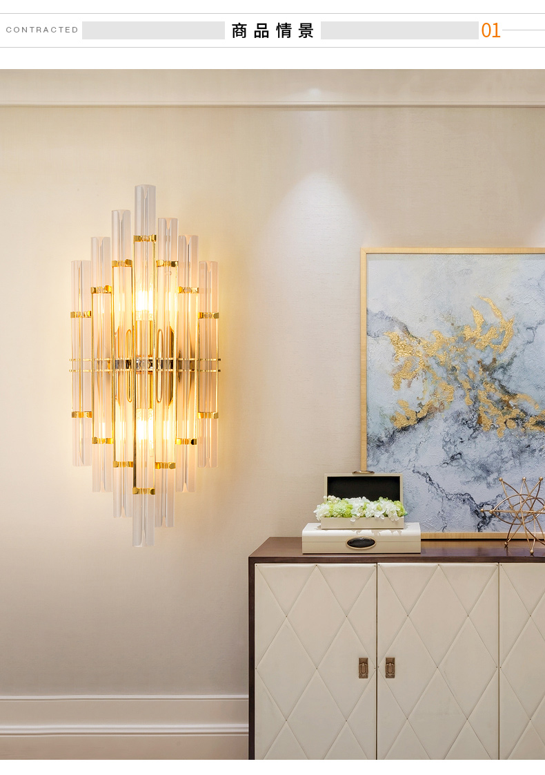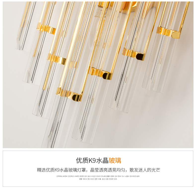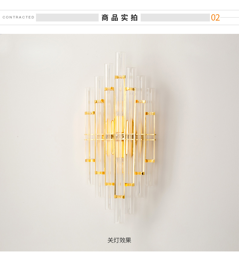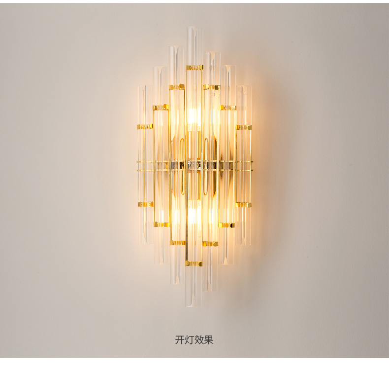 水晶壁灯卧室床头灯电视背景墙壁灯LED现代简约北欧金色灯具