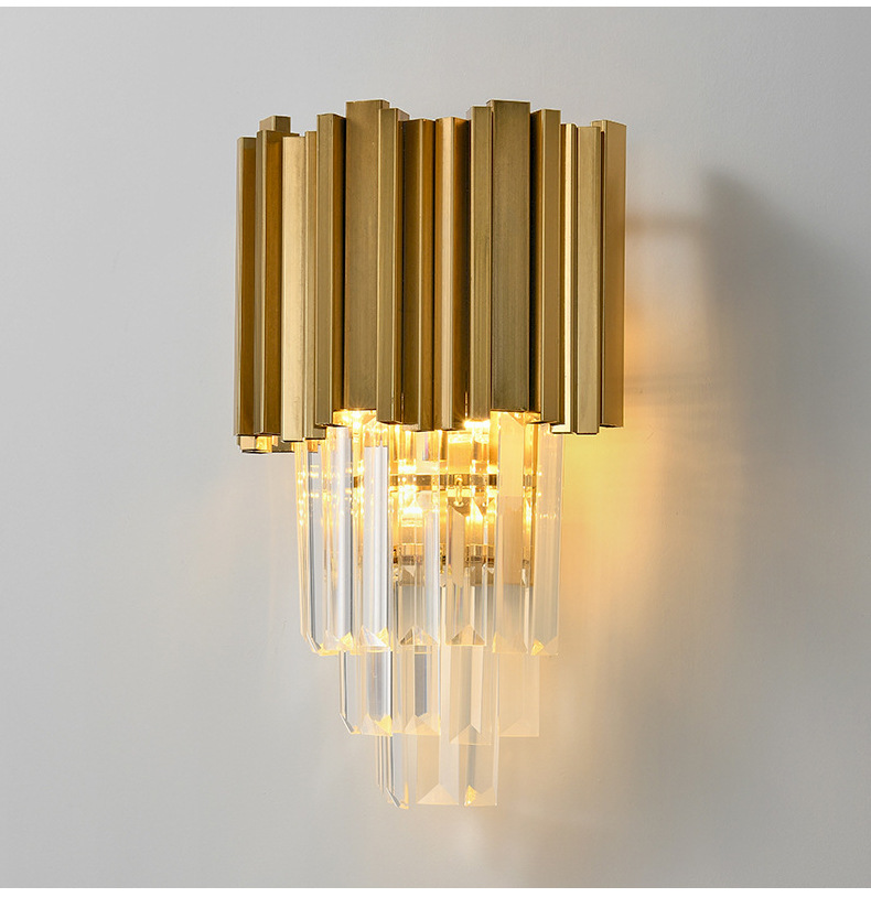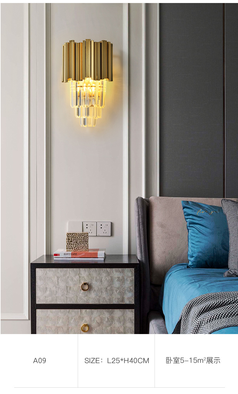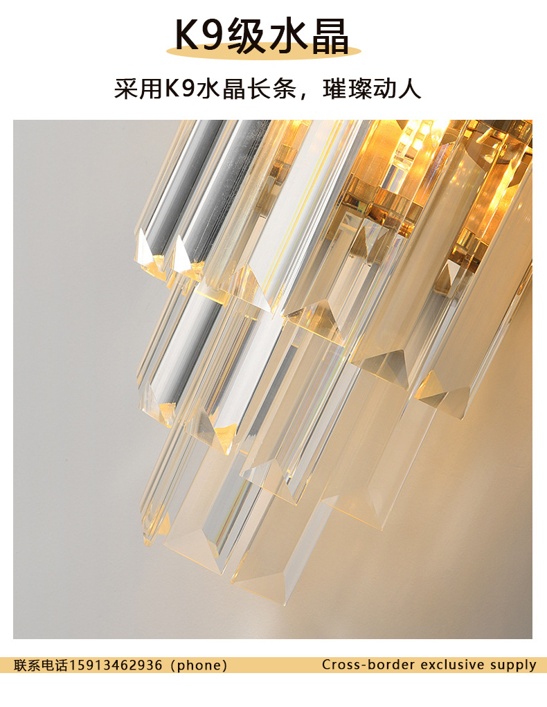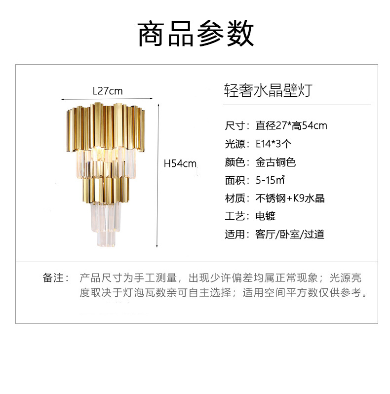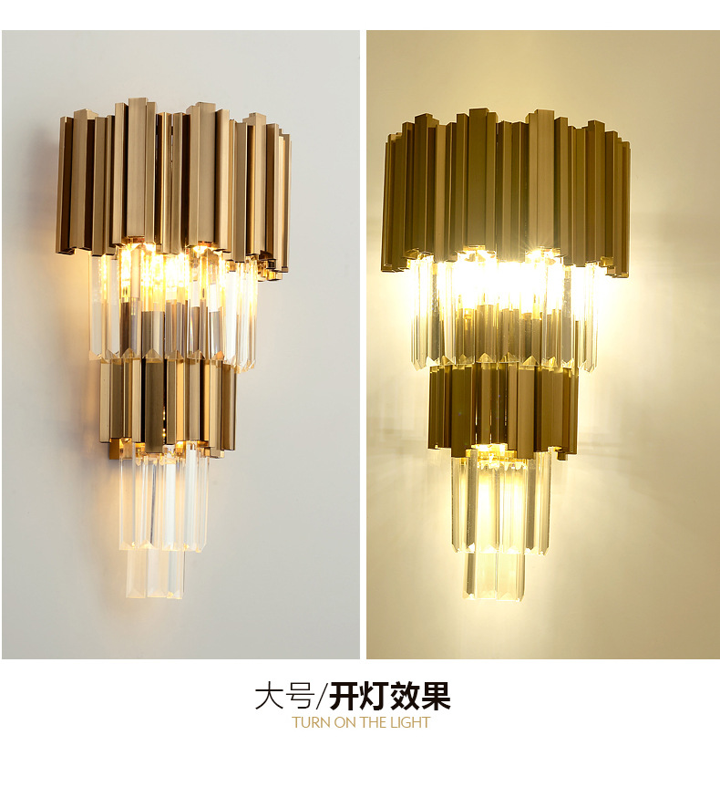 水晶壁灯客厅卧室床头灯酒店奢华大气过道灯不锈钢K9水晶壁灯