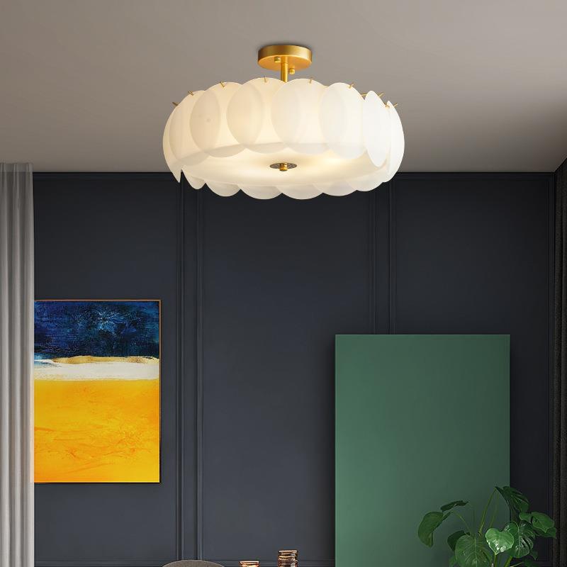 法式简约客厅吸顶灯北欧创意艺术led灯圆形奶白卧室房间灯具