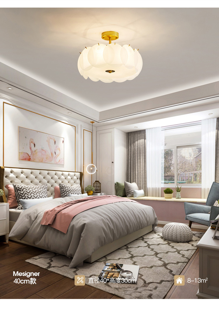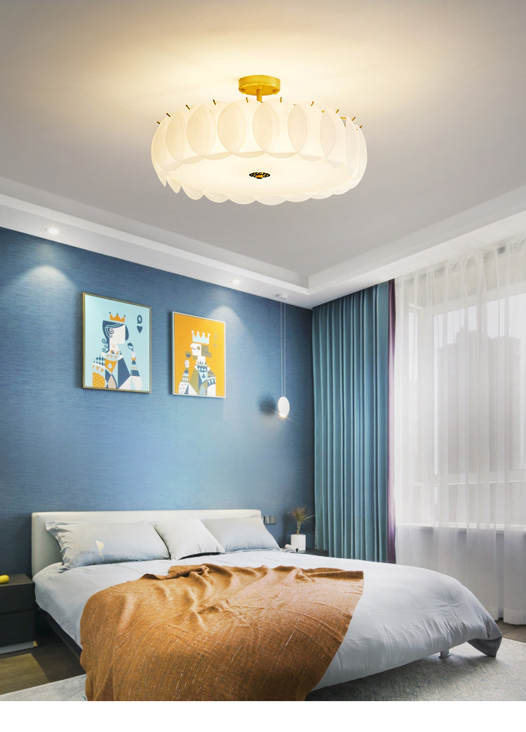 卧室吊灯温馨浪漫婚房主卧灯北欧卧室灯金色风铃吊灯