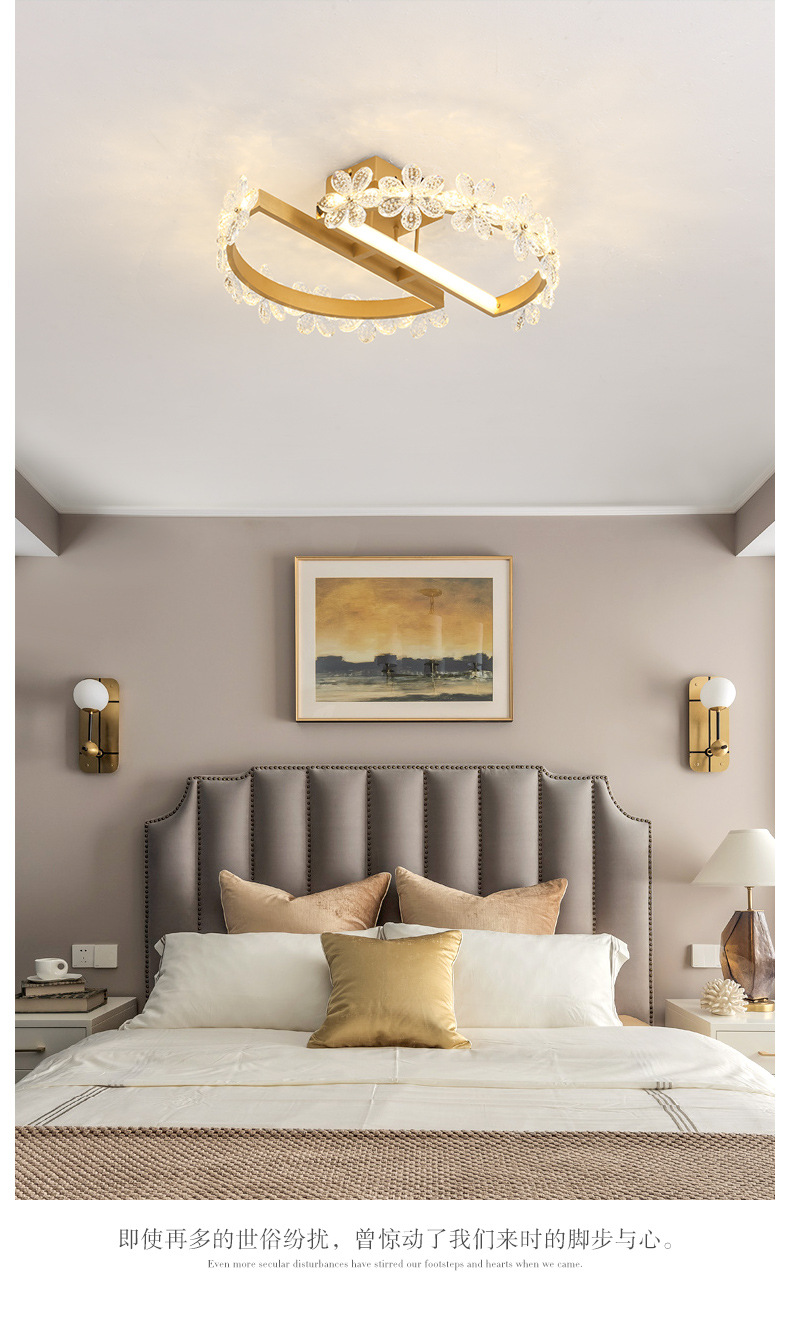 卧室吊灯温馨浪漫婚房主卧灯北欧卧室灯金色风铃吊灯