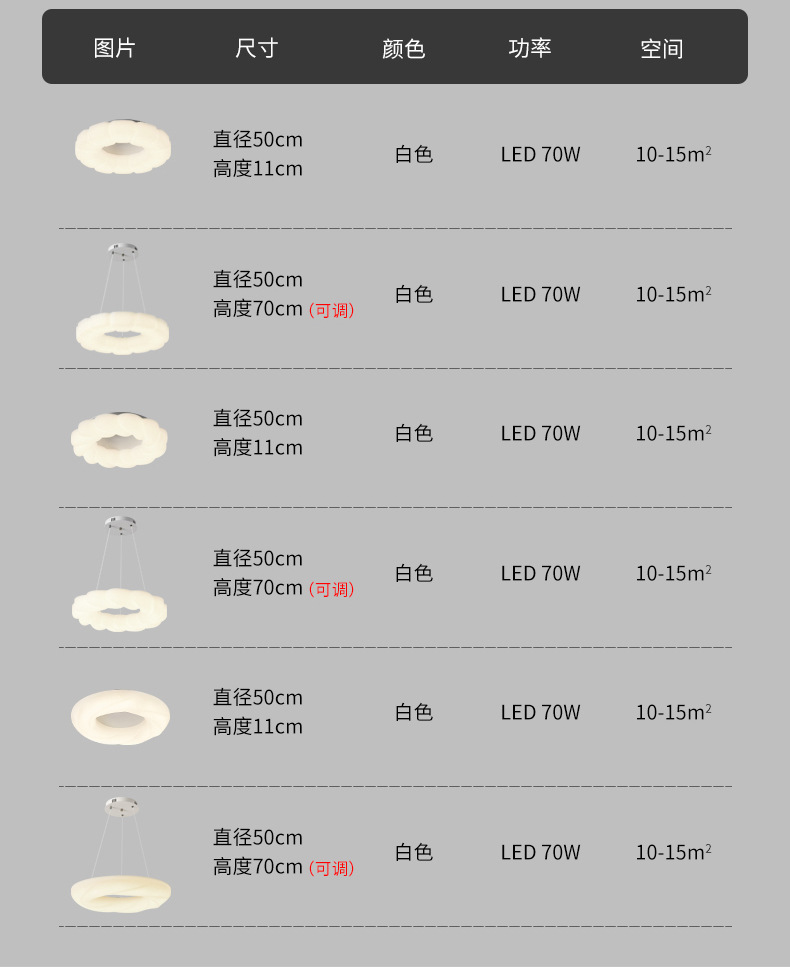 甜圈吊灯 500*1000MM(可调节)