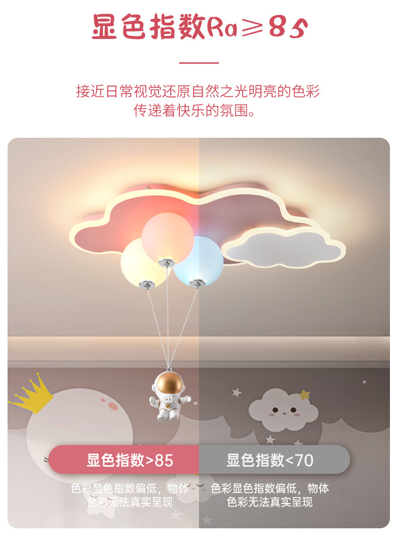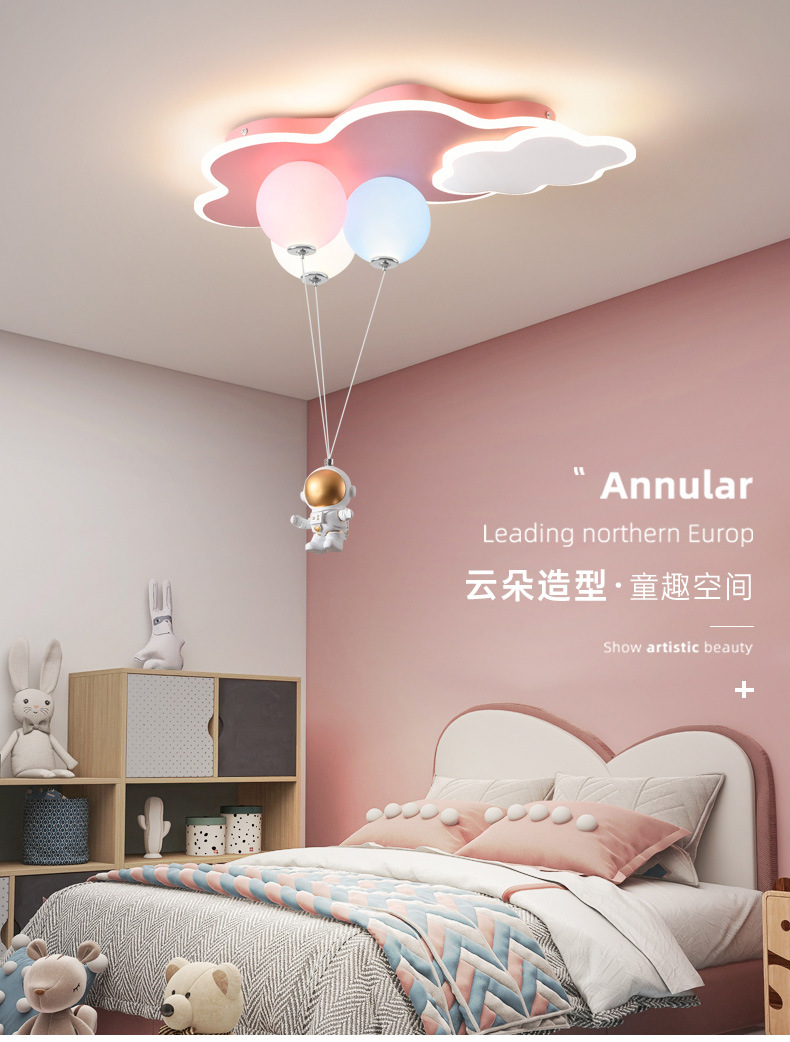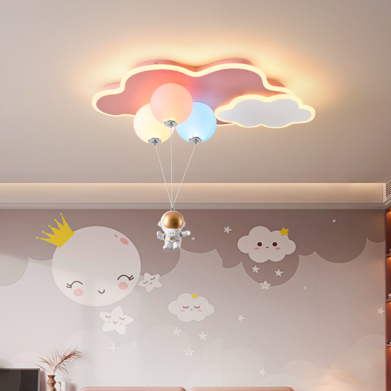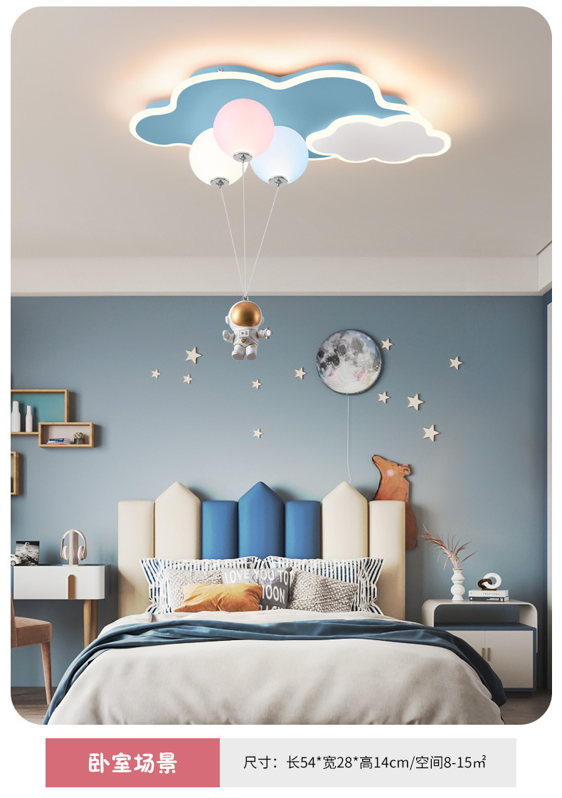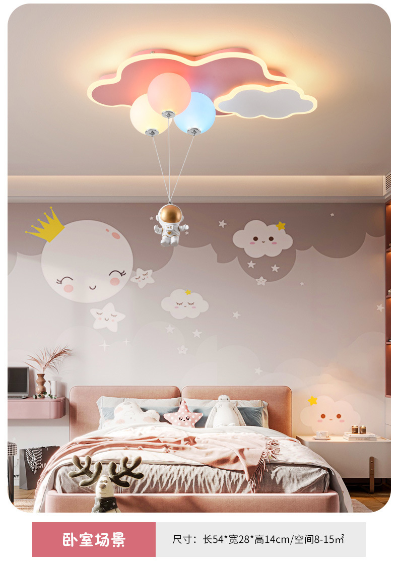 儿童房灯创意飞机灯男女孩公主云朵气球吊灯太空人护眼卧室灯