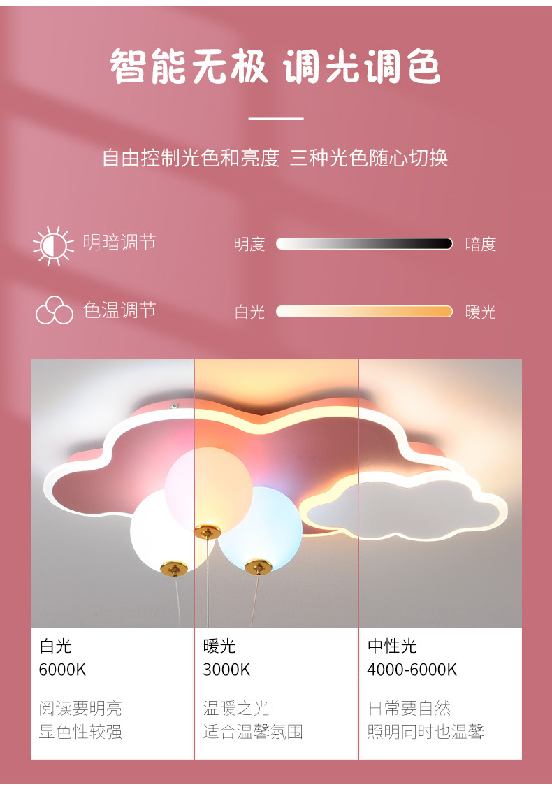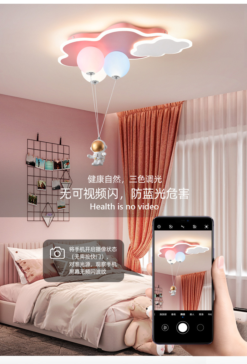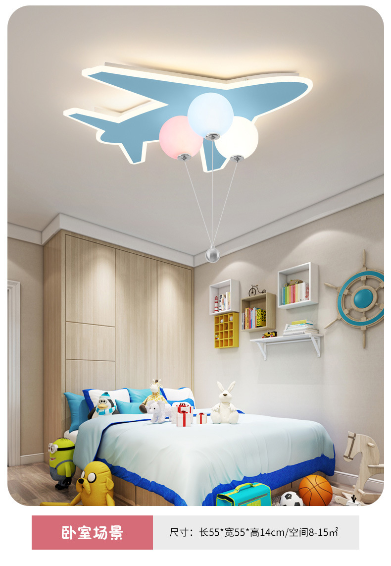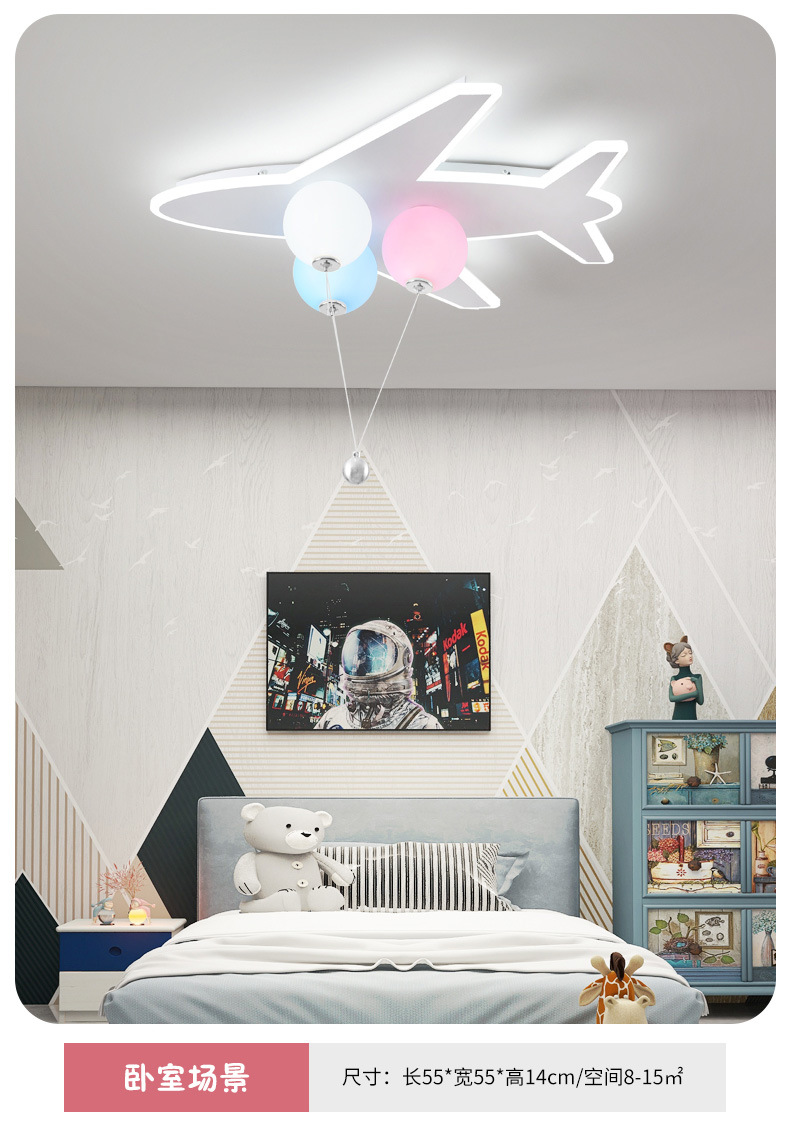 儿童房灯创意飞机灯男女孩公主云朵气球吊灯太空人护眼卧室灯