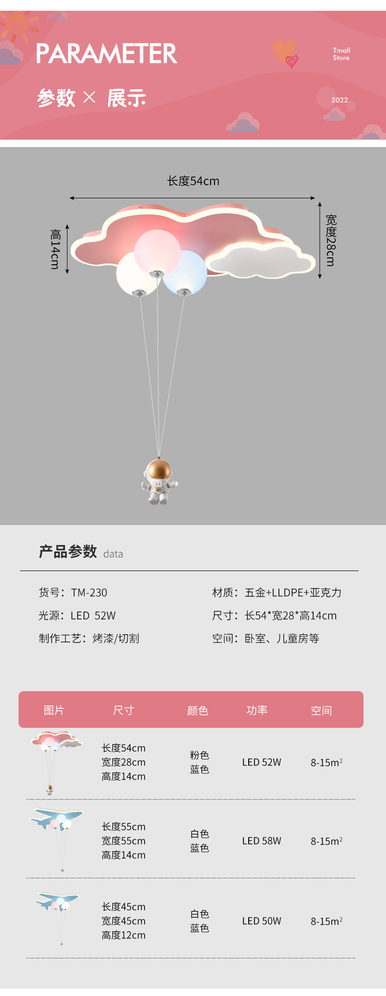 迈娅商城 房灯创意飞机灯男女孩公主云朵气球吊灯太空人护眼卧室灯