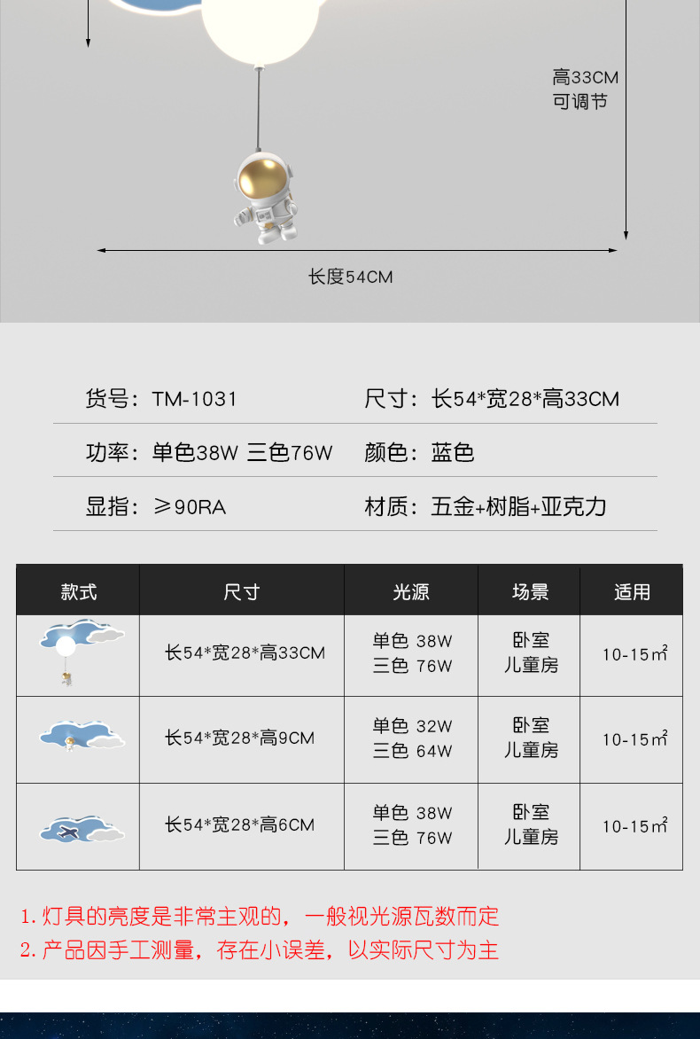 宇航员+气球+云54×28×33MM(可调) LED无极调光38*2W