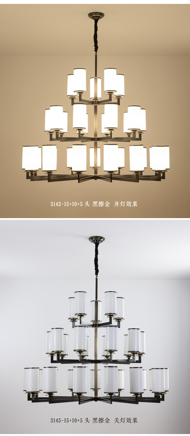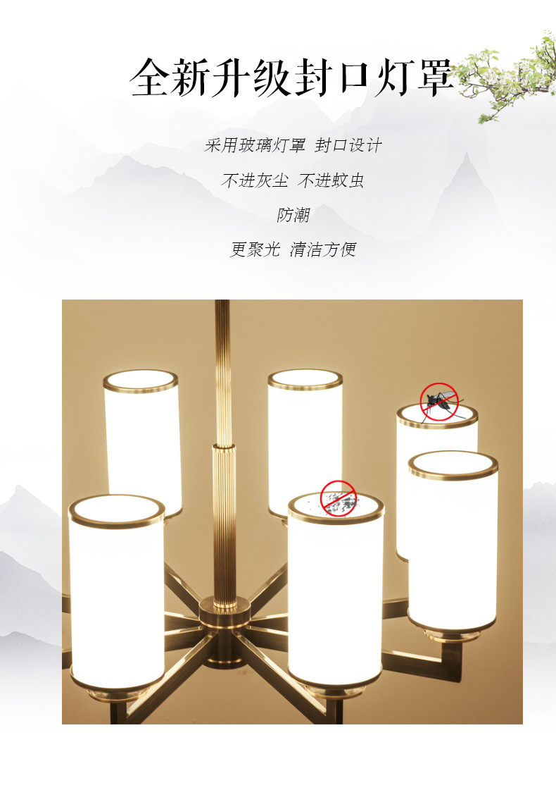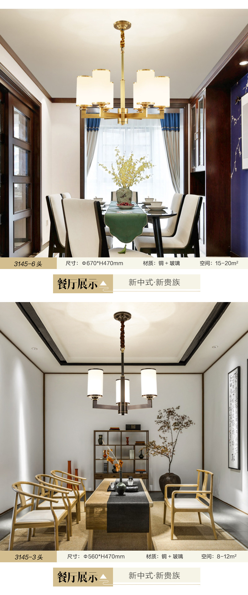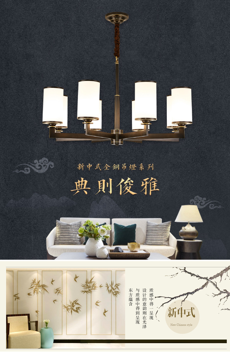 全铜主客厅吊灯现代简约卧室房间灯新中式长形餐厅LED灯具