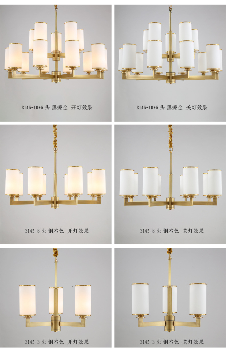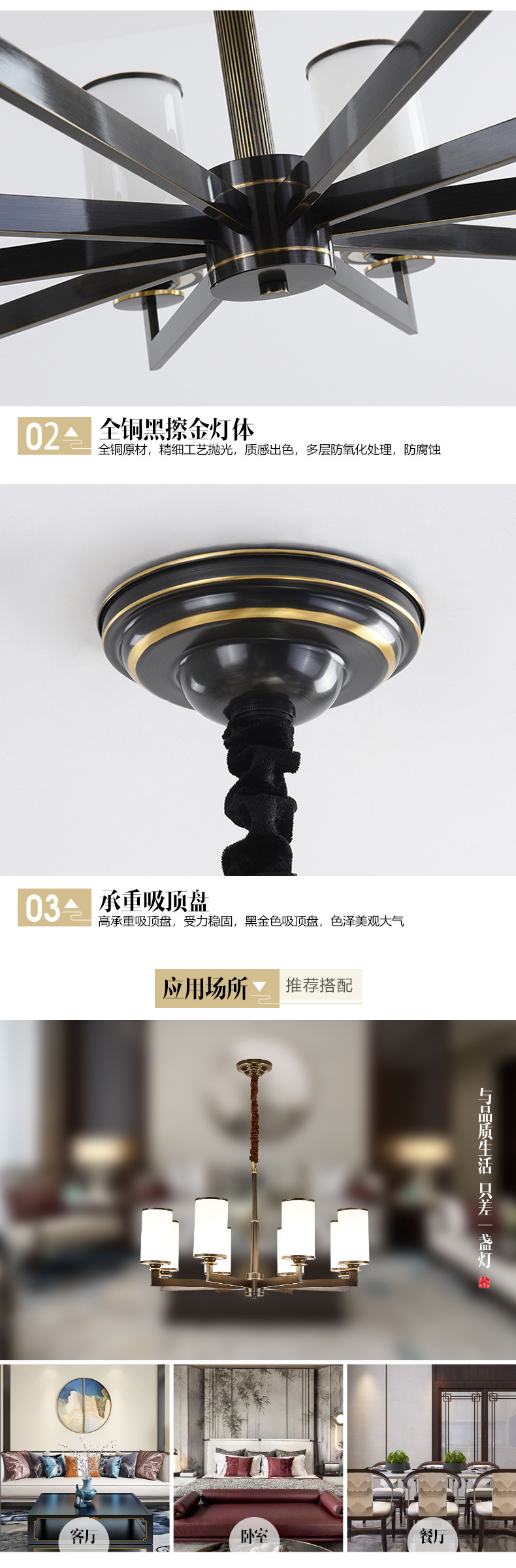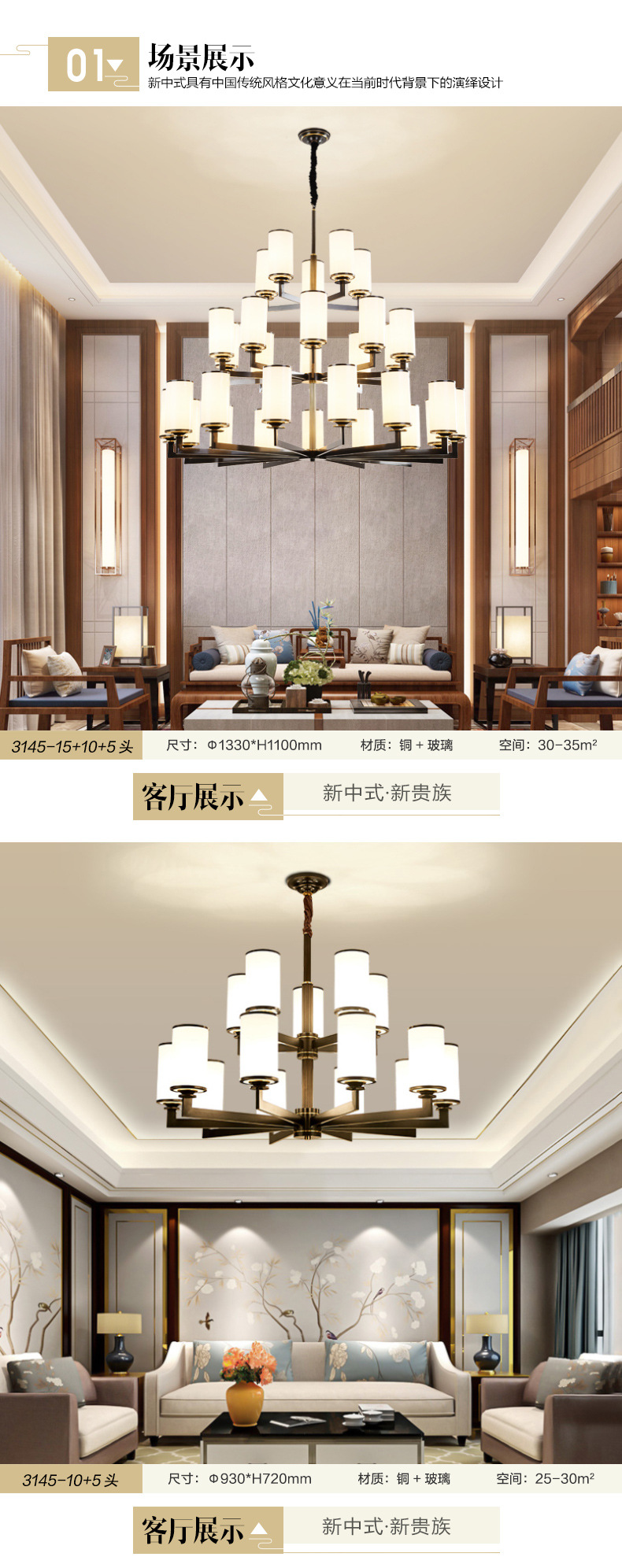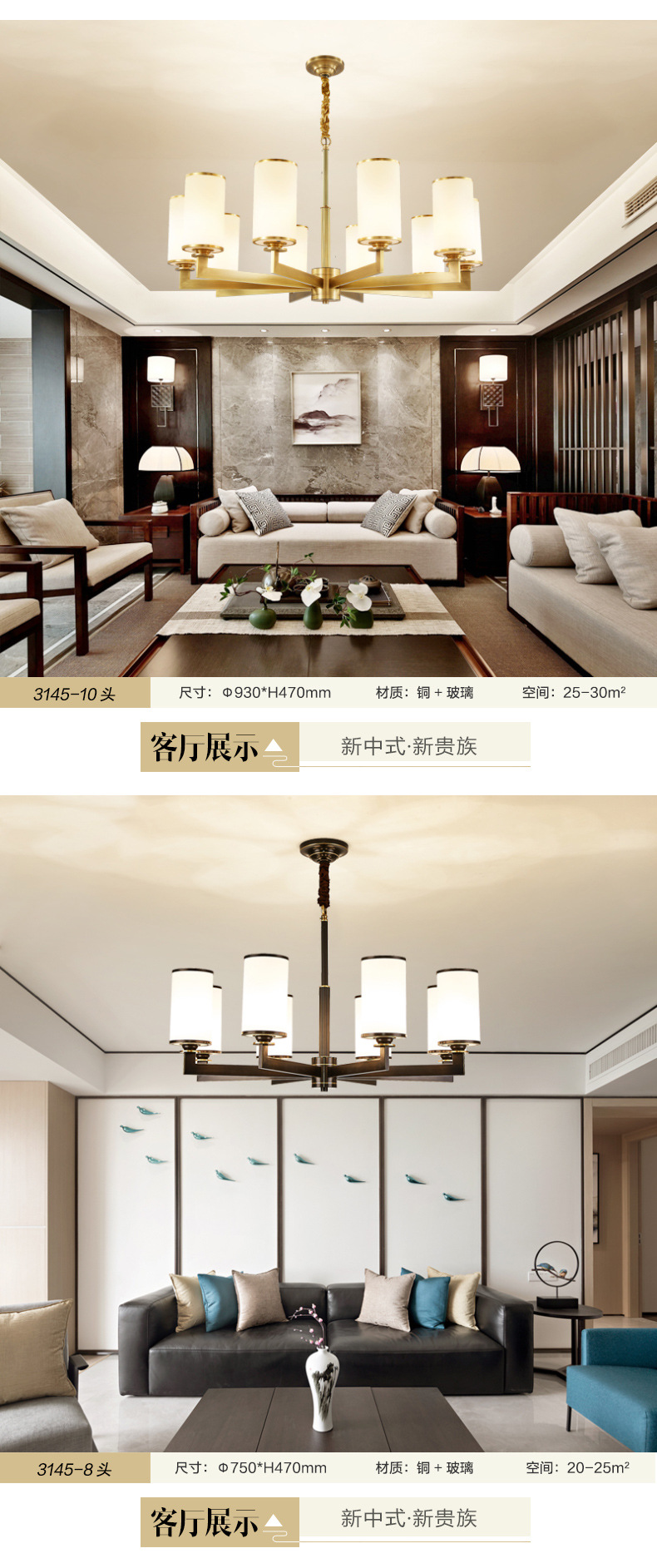 全铜主客厅吊灯现代简约卧室房间灯新中式长形餐厅LED灯具