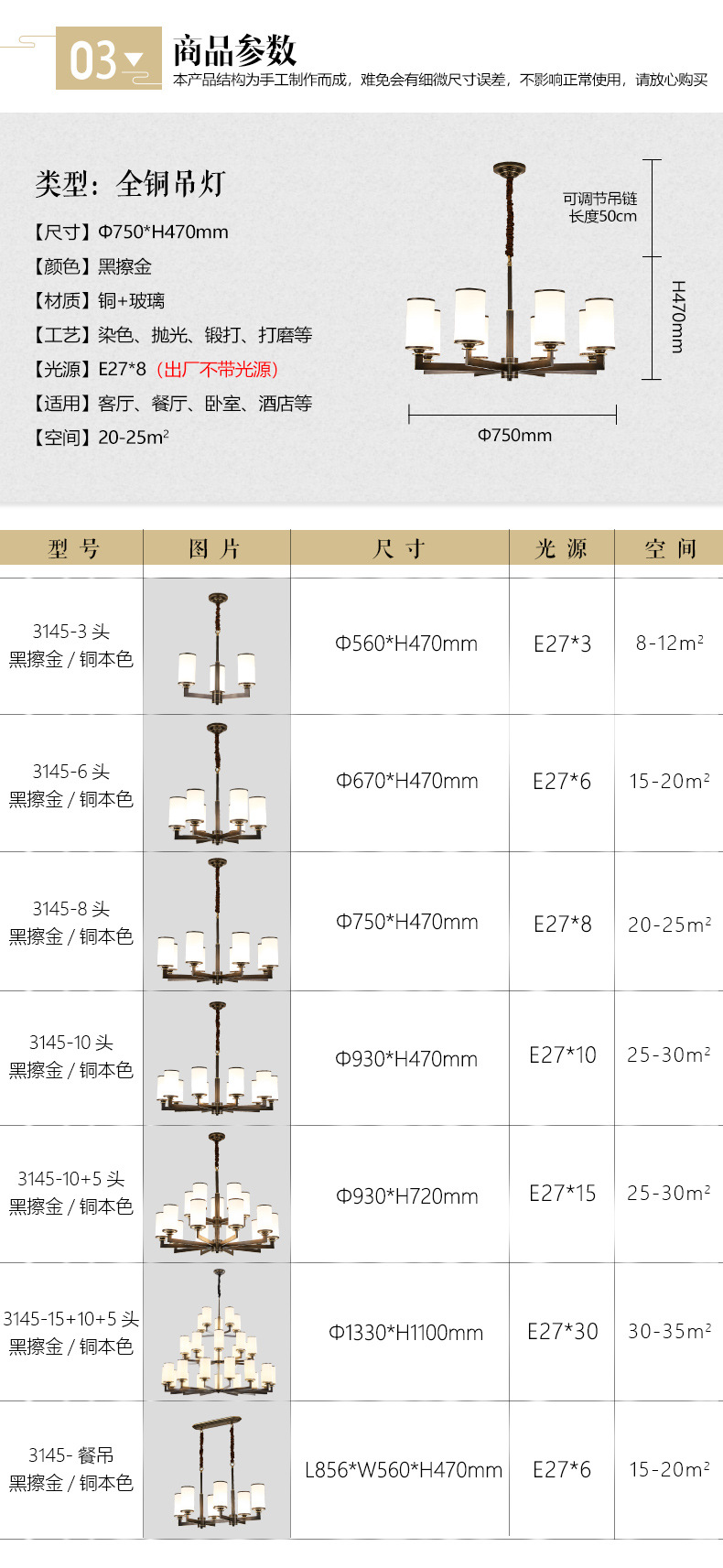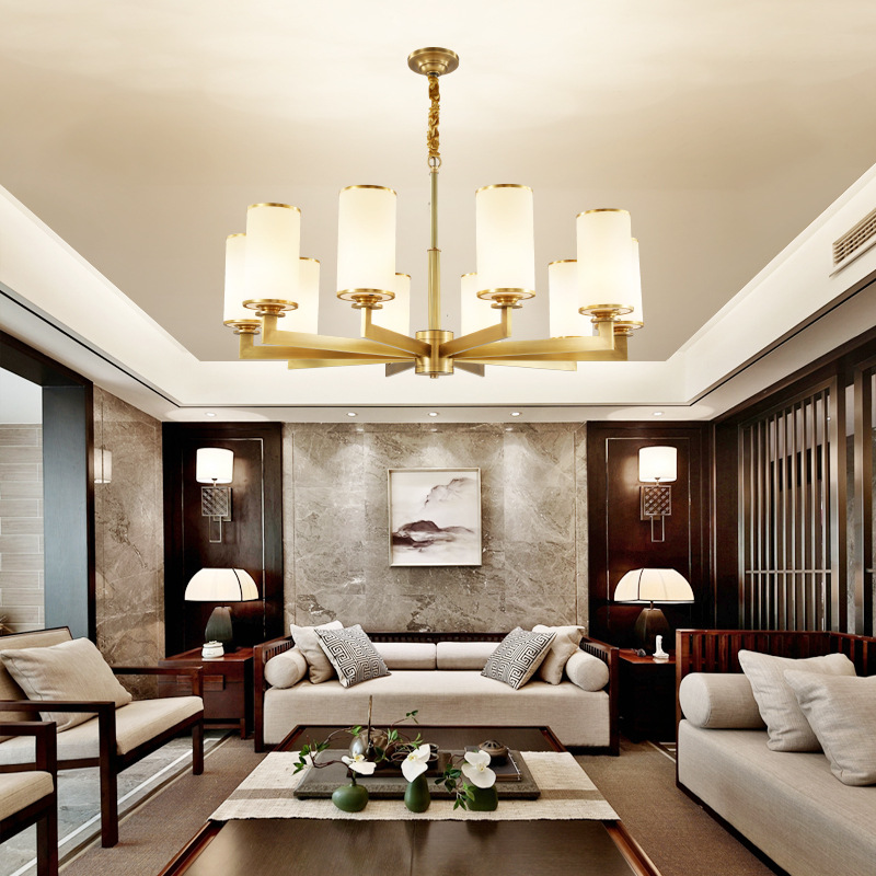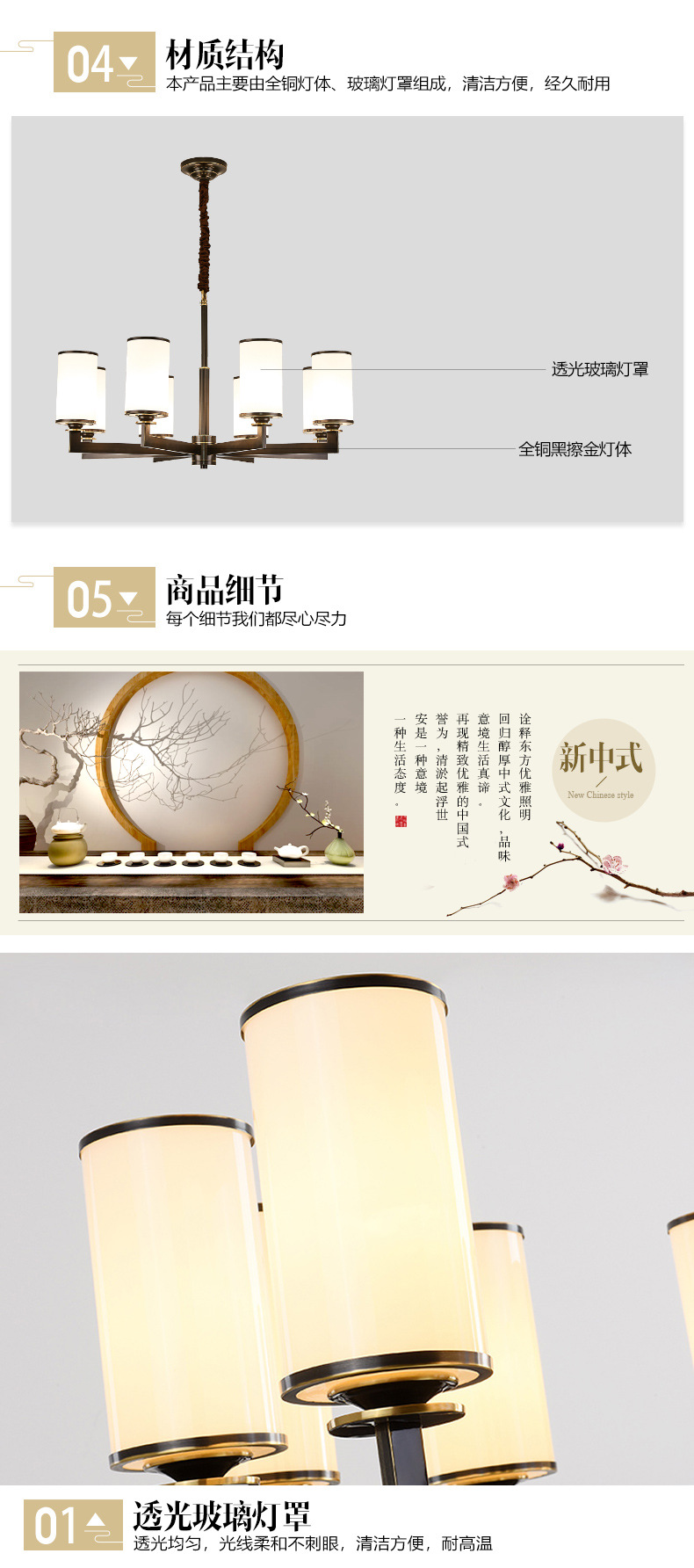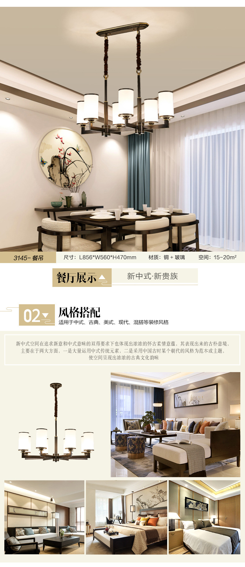 全铜主客厅吊灯现代简约卧室房间灯新中式长形餐厅LED灯具