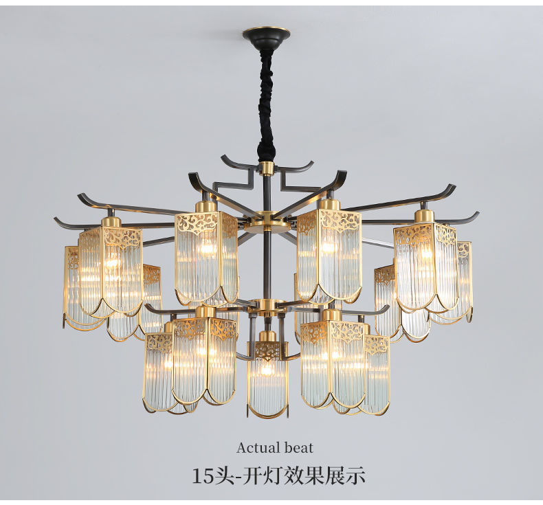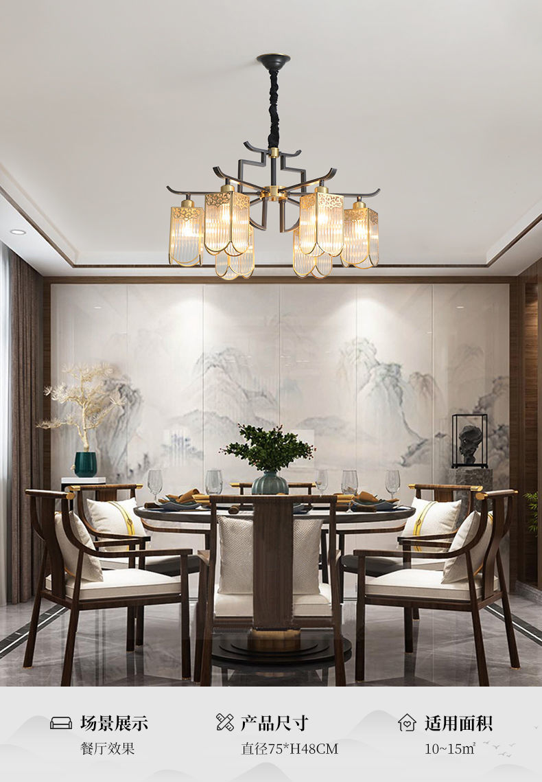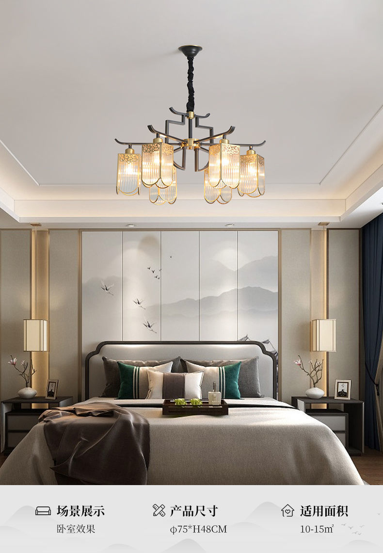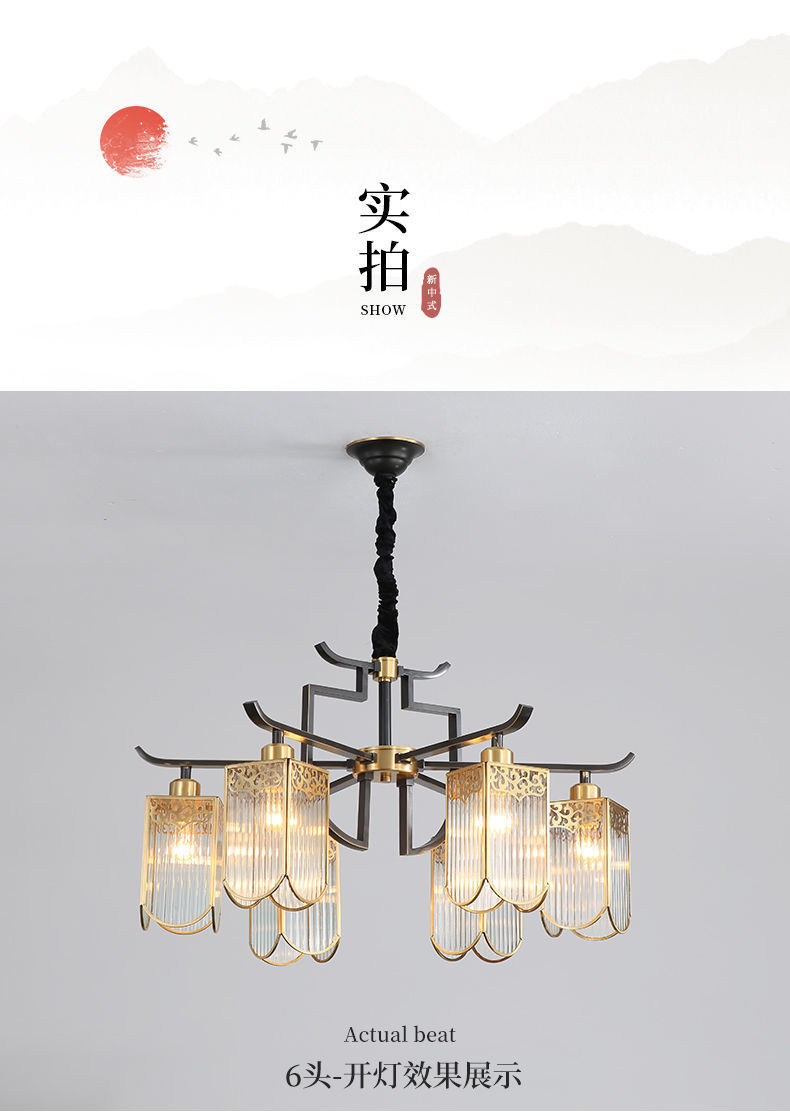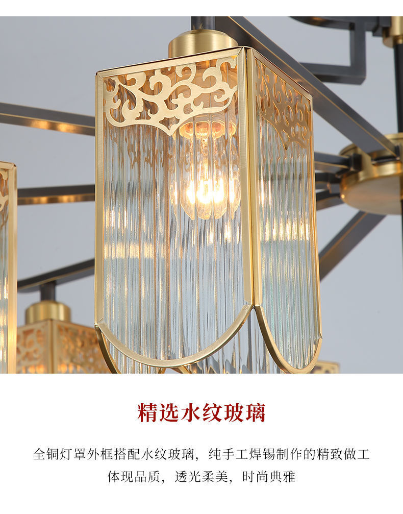 全铜新中式吊灯客厅大灯简约现代餐厅卧室铜灯房间灯客厅吊灯