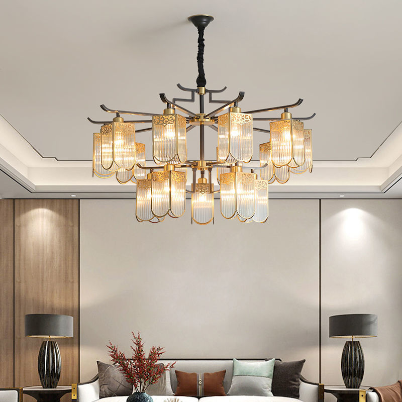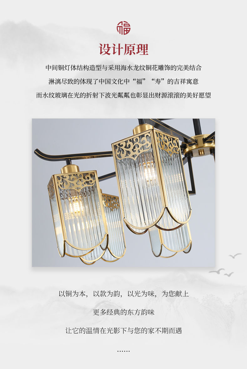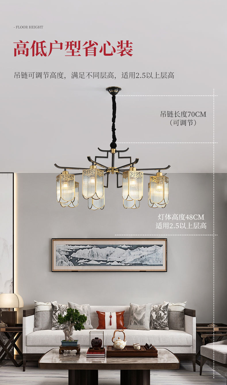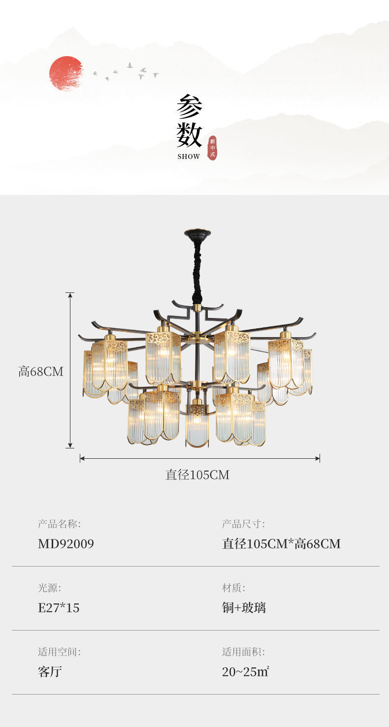 全铜新中式吊灯客厅大灯简约现代餐厅卧室铜灯房间灯客厅吊灯