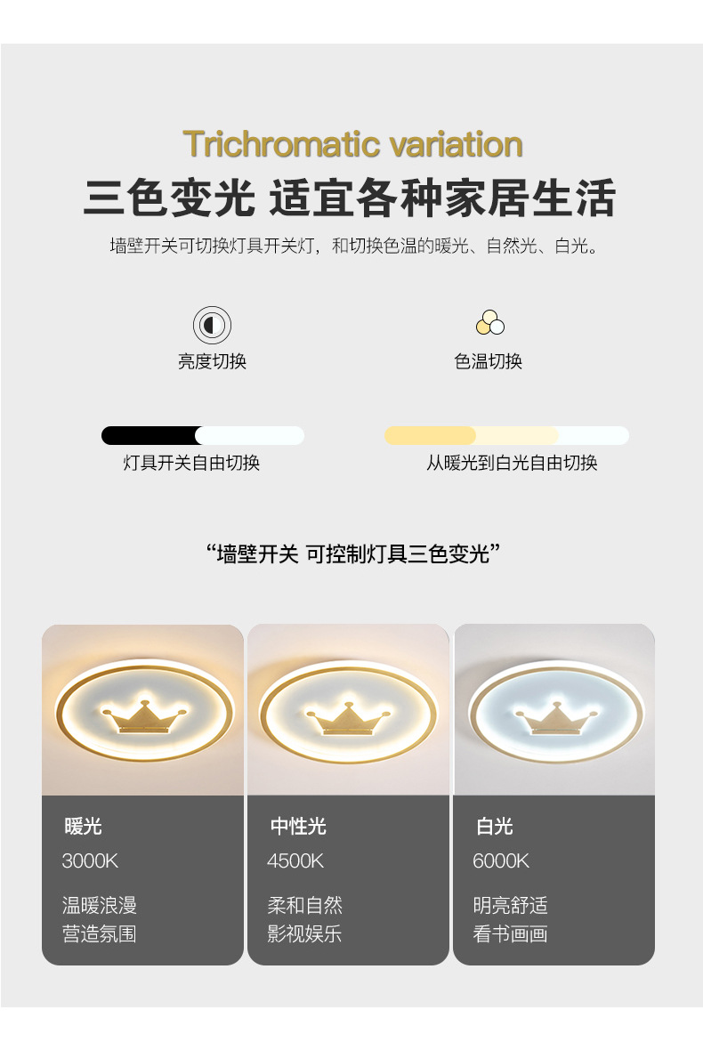 创意造型个性皇冠吸顶灯儿童房主卧新款客厅灯现代简约风卧室灯