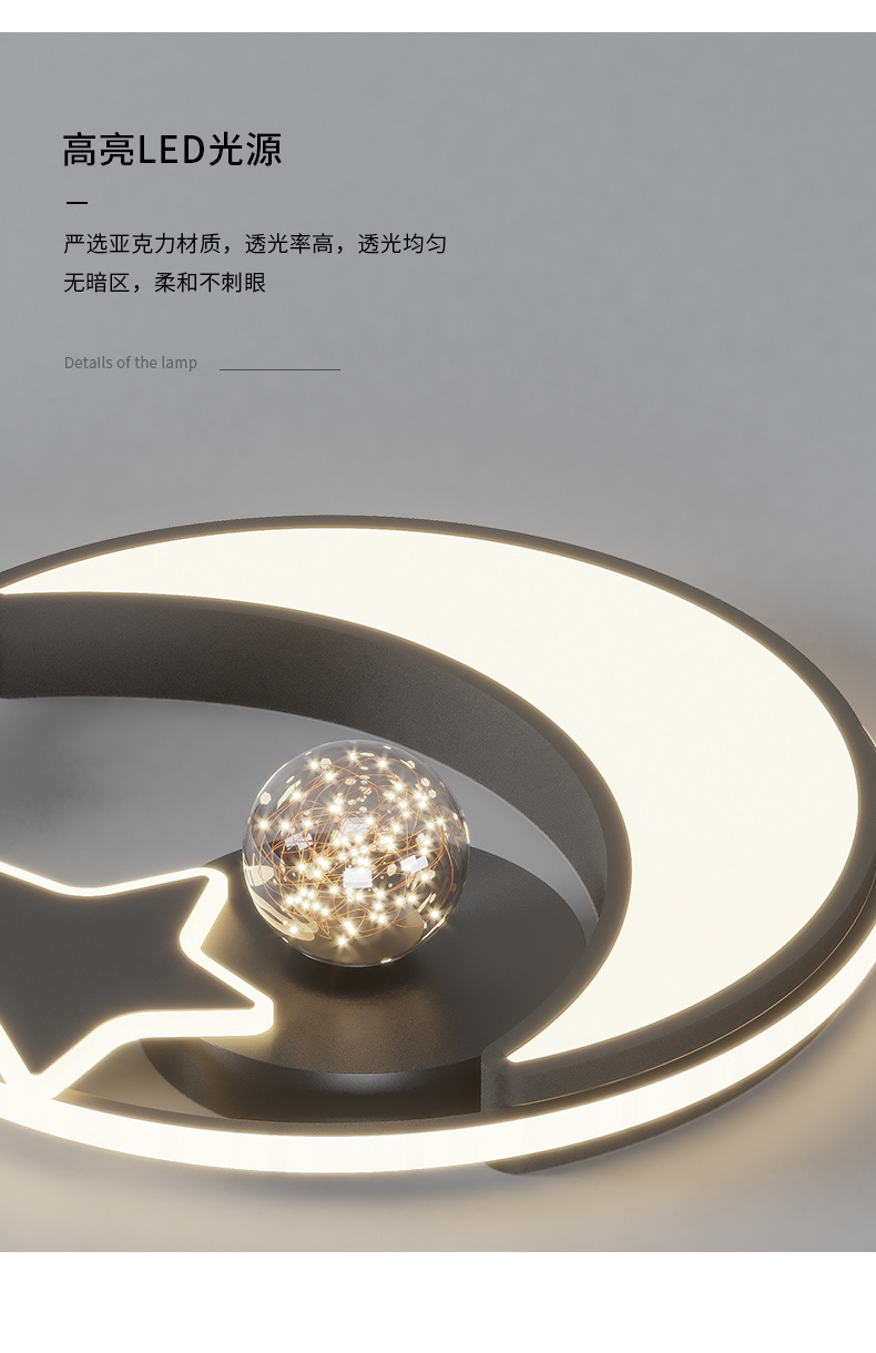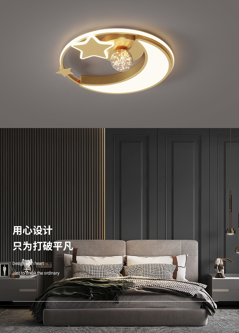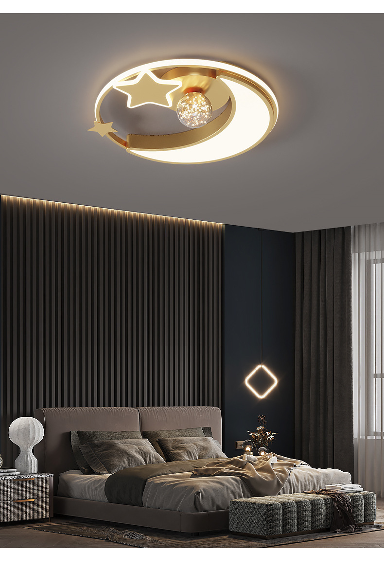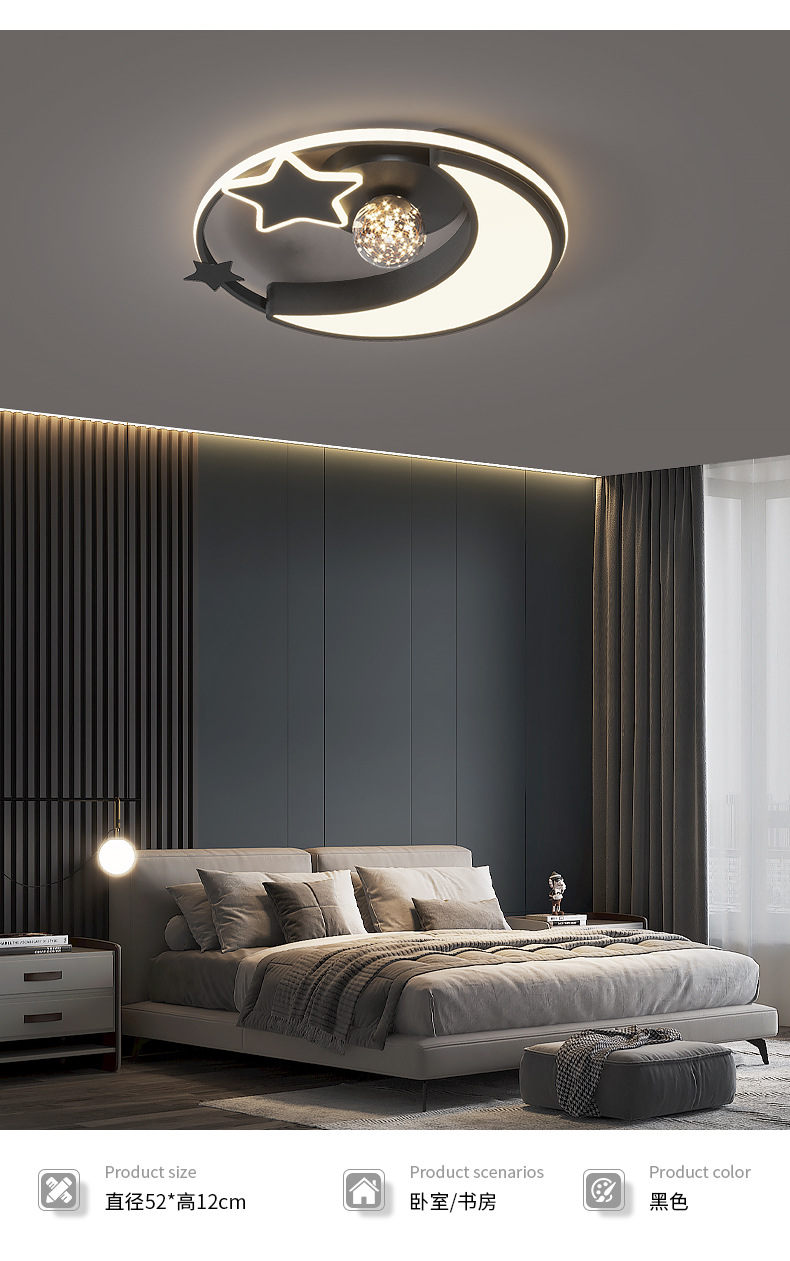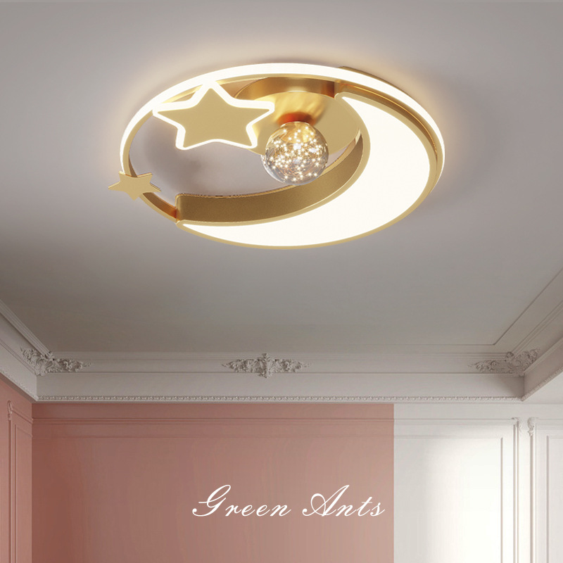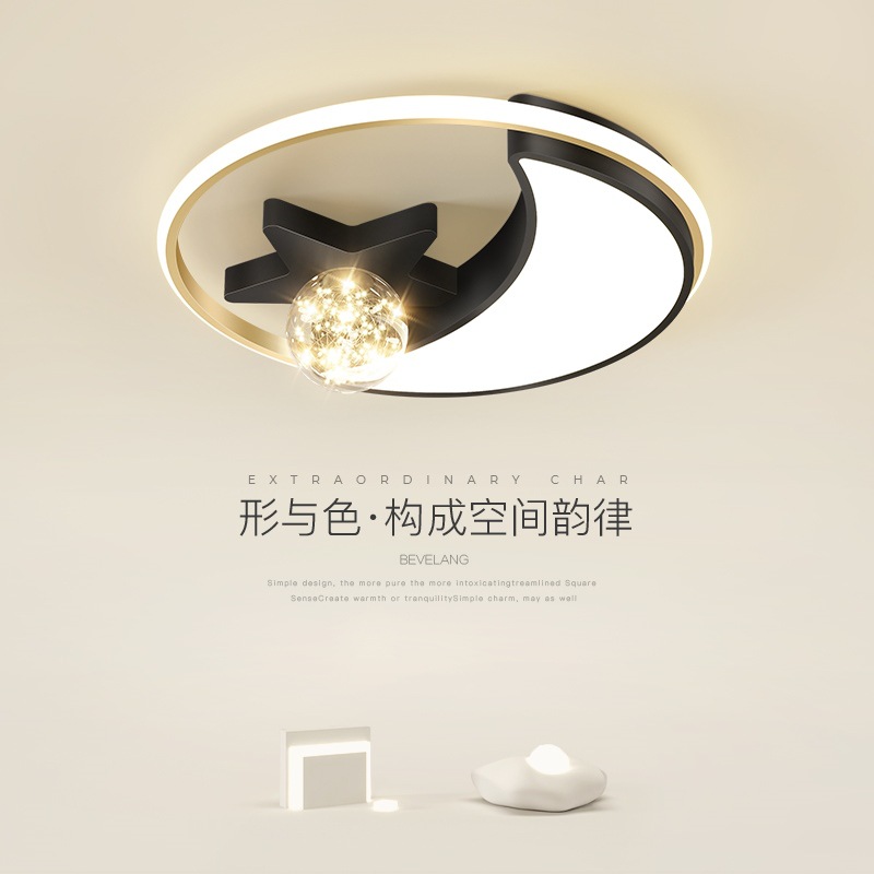 北欧浪漫儿童房灯现代简约创意月亮满天星led灯具网红房间吸顶灯