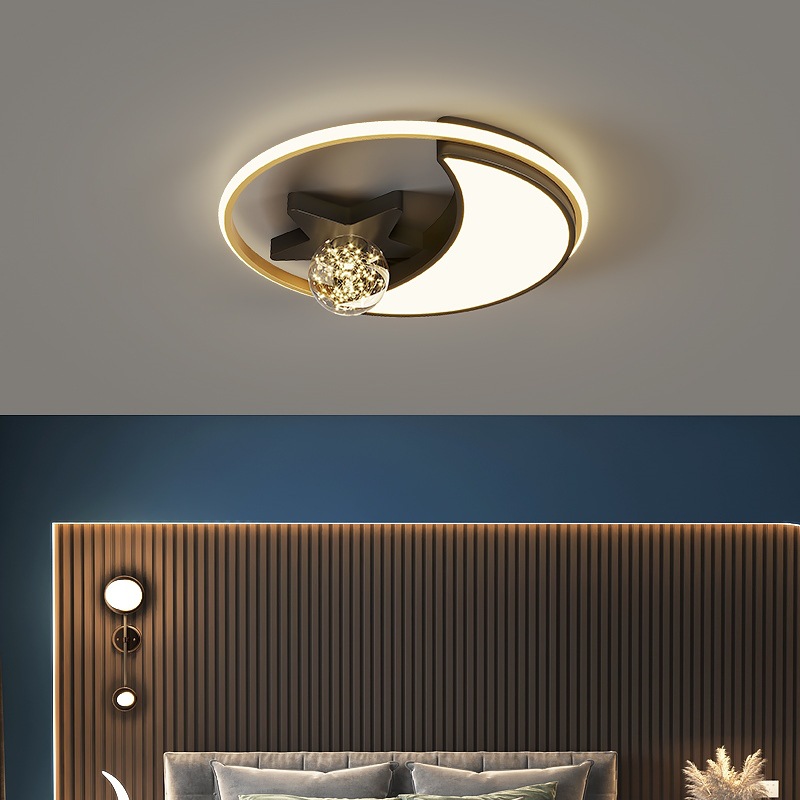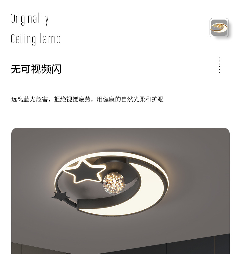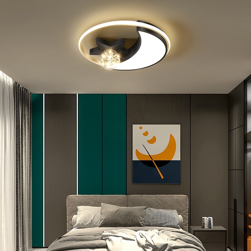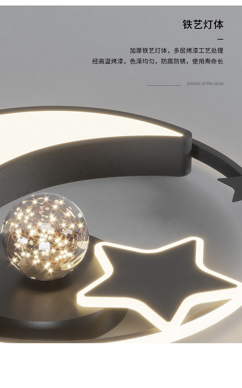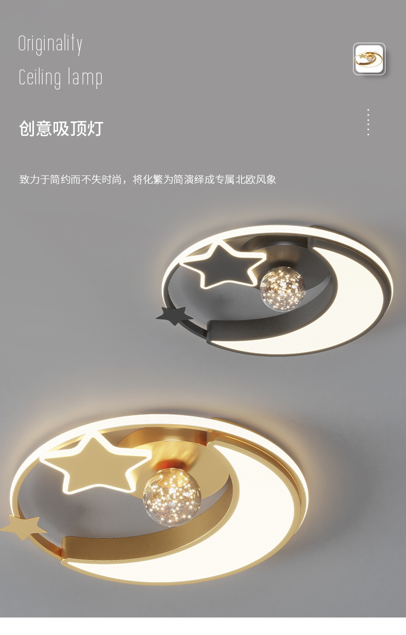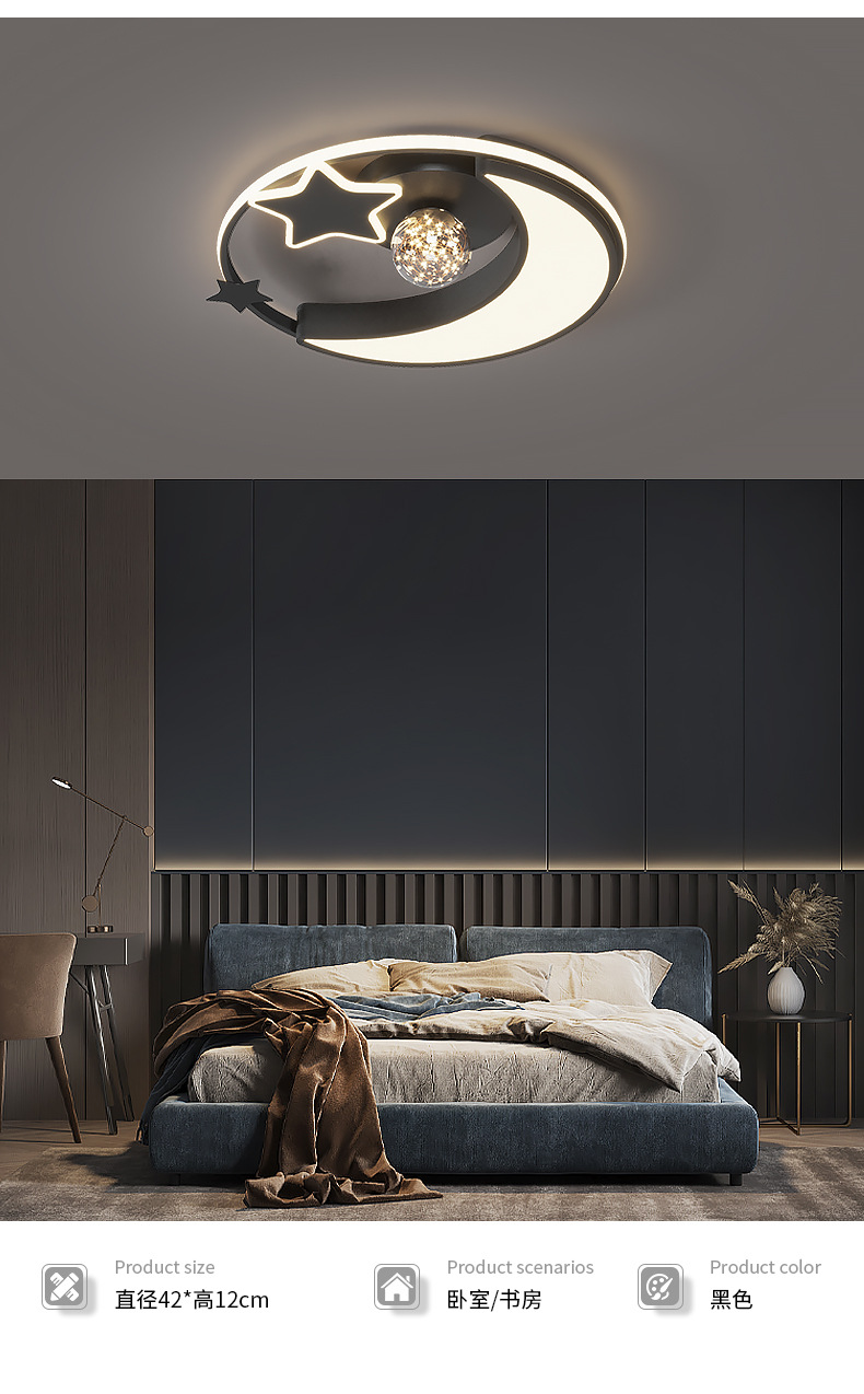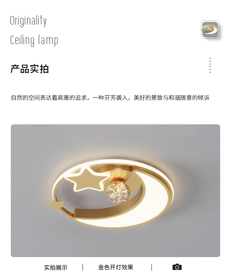 北欧浪漫儿童房灯现代简约创意月亮满天星led灯具网红房间吸顶灯