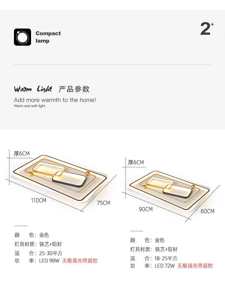 迈娅商城 全铜客厅吸顶灯超薄长方圆形灯智能个性卧室灯具