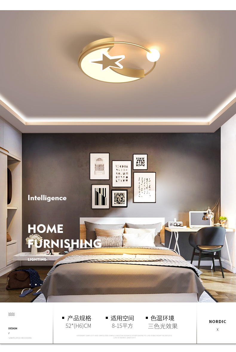 星星房间吸顶灯卧室儿童房卡通男孩女孩简约现代圆形北欧新款灯具