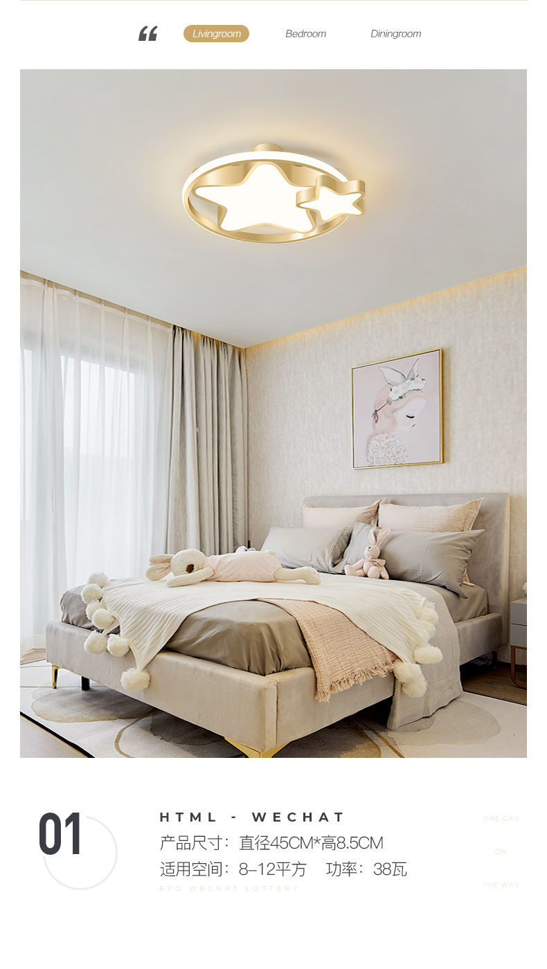 迈娅商城 卧室灯北欧简约现代led吸顶灯壁灯浪漫房间灯创意个性书房灯