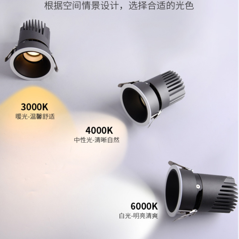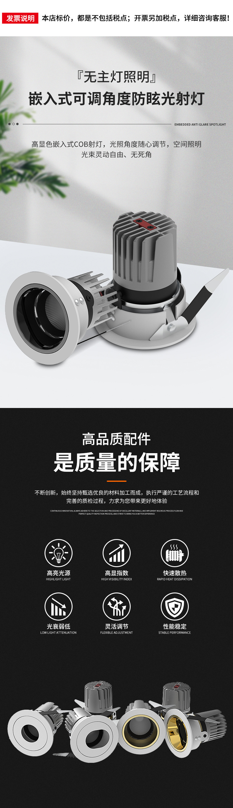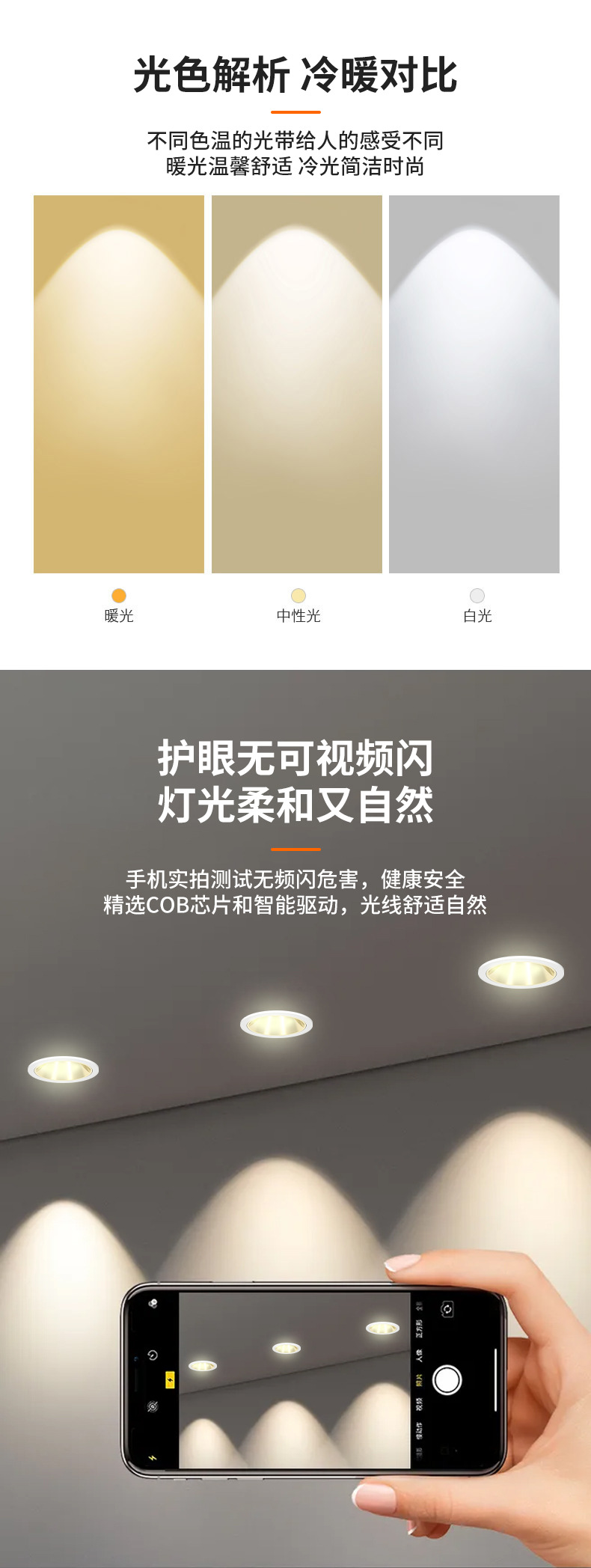 LED筒灯深藏防眩光射灯嵌入式可调角度COB射灯天花洗墙灯无主灯